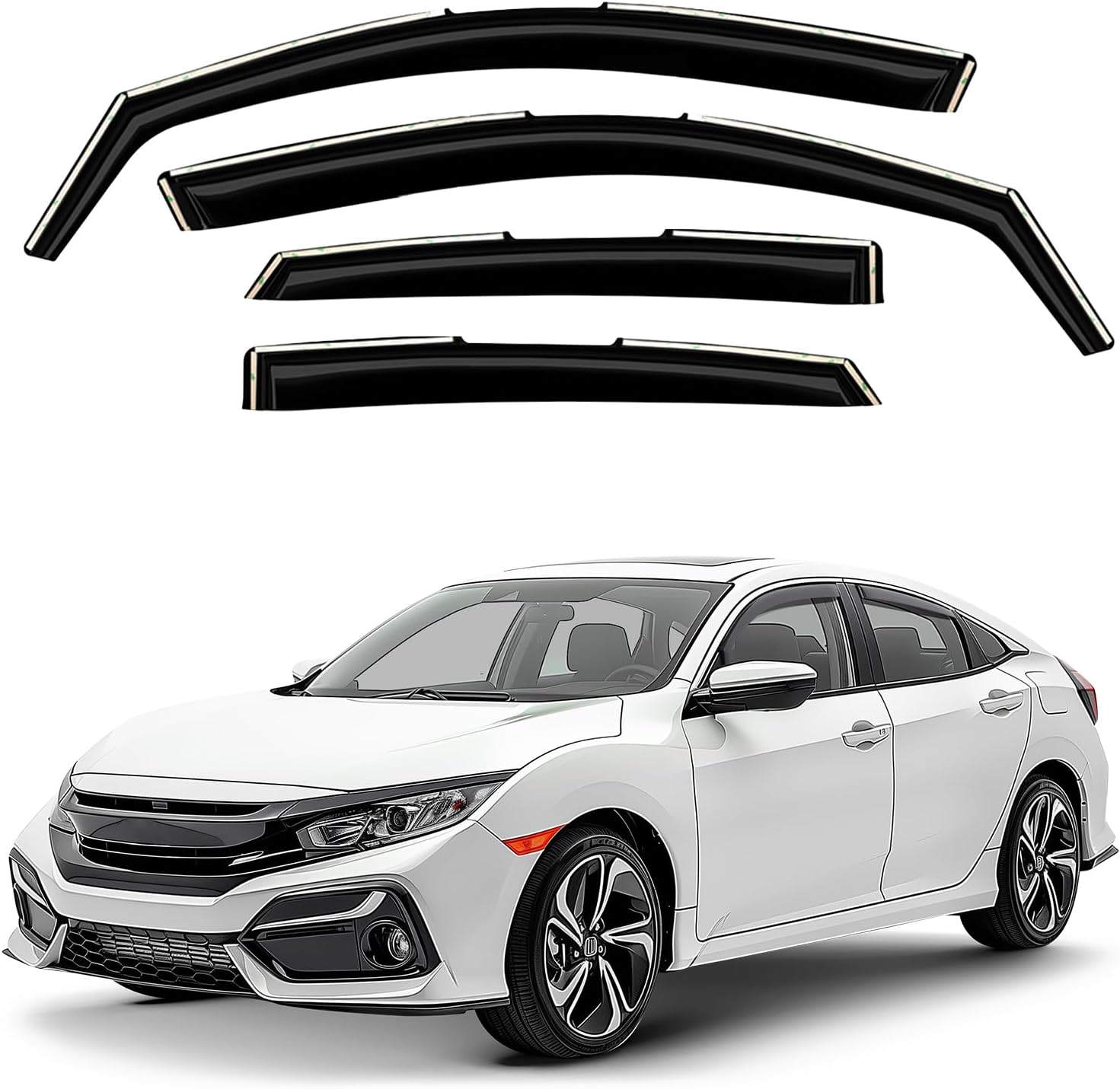 Window Deflectors Smoke Tinted In-Channel Side Window Vent Visor Deflectors Rain Guards Compatible with Civic 2016-2021 Sedan - 4pcs. GW0714