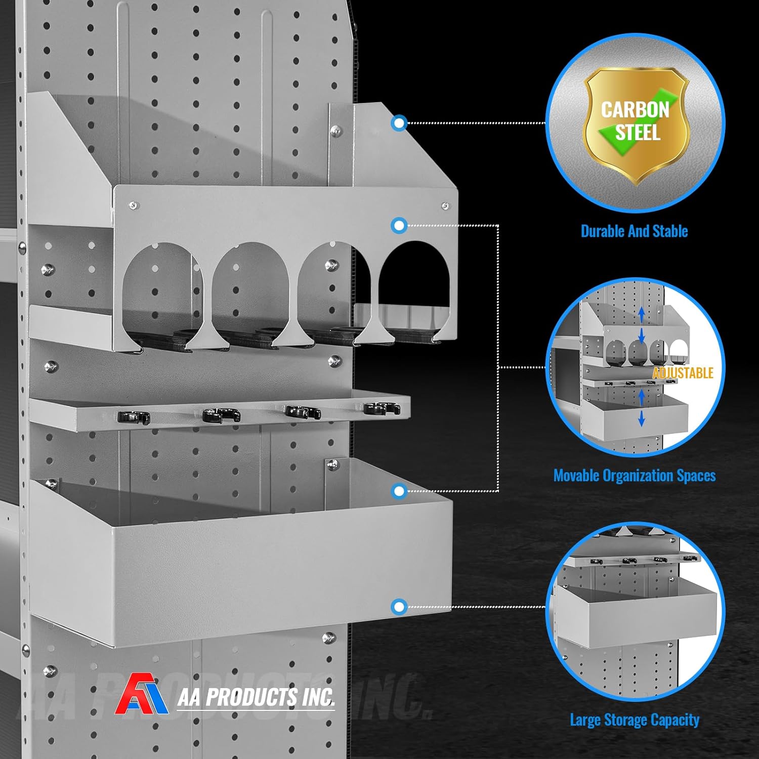 - AA power tool storage organizer can be mounted on a tool box, cart or wall, especially designed for 16β D AA van shelving storage racks.
