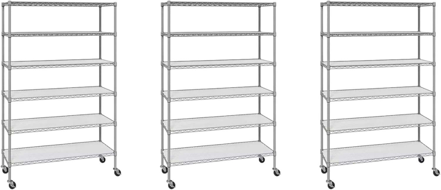 Organize in Style with The Members Mark 6-Tier NSF Heavy Duty Wire Shelving, 47.75" W x 18" D x 75.5" H (Granite, 3 PACK)