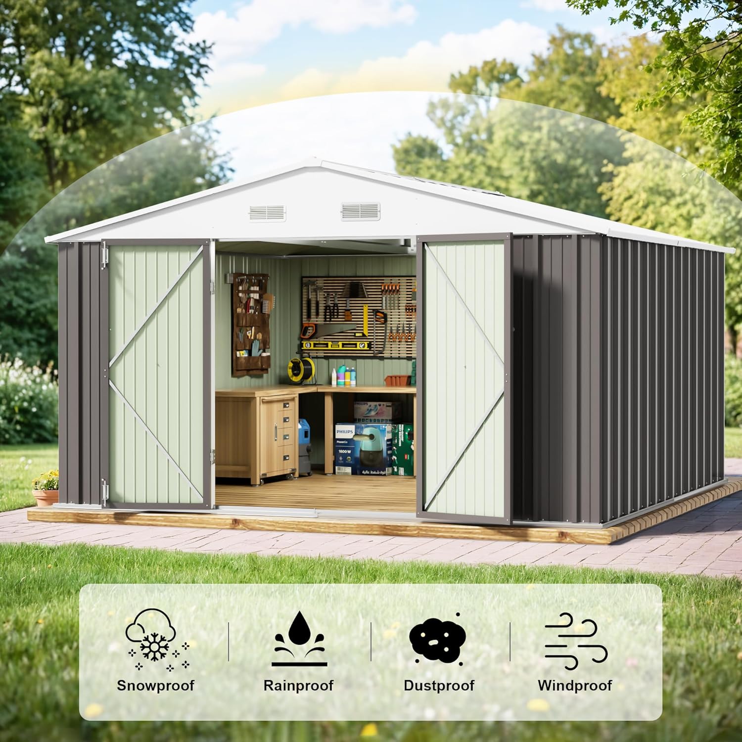 JUMMICO 10 x 10 FT Outdoor Storage Shed, Large Metal Garden Shed & Tool Sheds for Backyard Garden Patio Lawn (Grey)