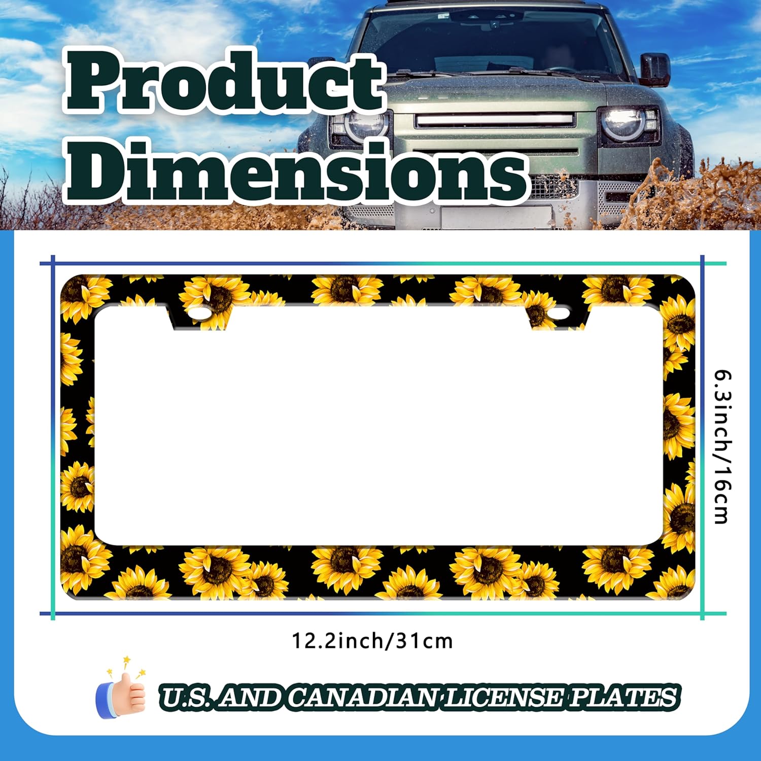 - 6.3 X 12.2 INCHES: Suitable for most standard size U.S. and Canadian license plates, can be applied to front or rear license plates, universal style. Add points to the beauty of your car!