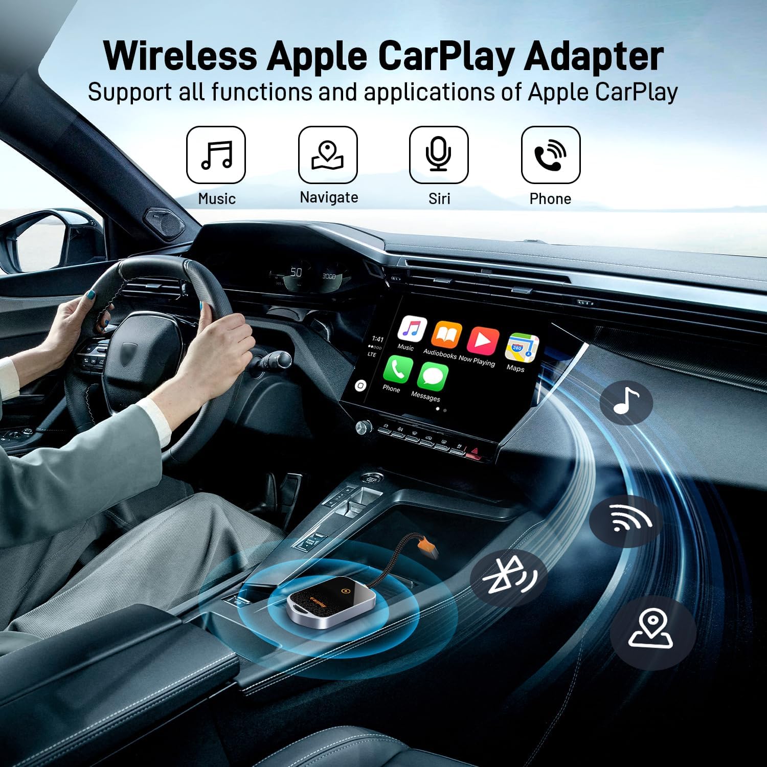 - 【Enjoy Wireless Freedom】Apple CarPlay wireless adapter converts wired CarPlay system to wireless without any hassle. Say goodbye to tangled cables and cumbersome setups, and hello to effortless connectivity that seamlessly integrates with your vehicle's infotainment system. NOTE: This dongle is only compatible with Apple CarPlay.