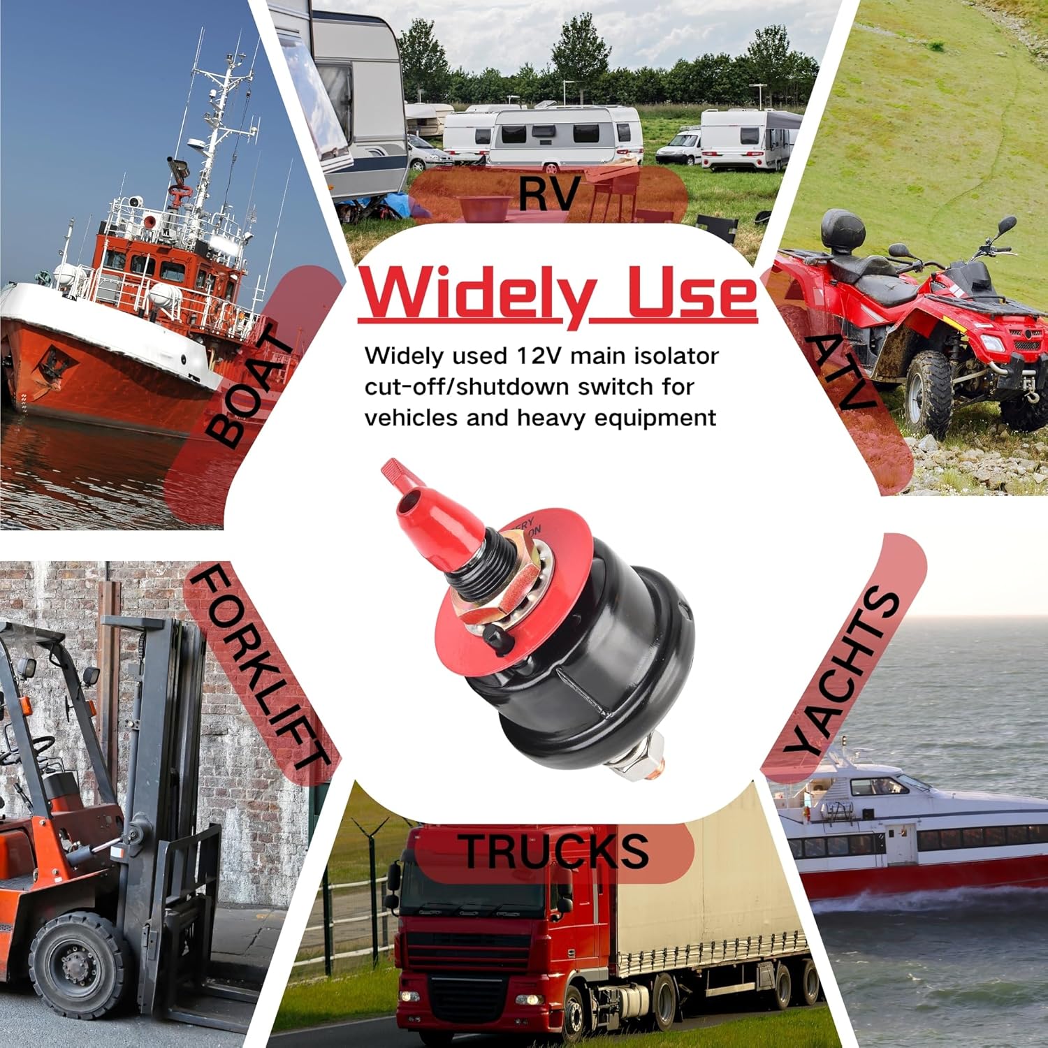 - ăVersatile Useă12V Battery Switch for Cars, RVs, ATVs, Boats, Yachts, Forklifts, Trucks,Engineering vehicles and Heavy Equipment