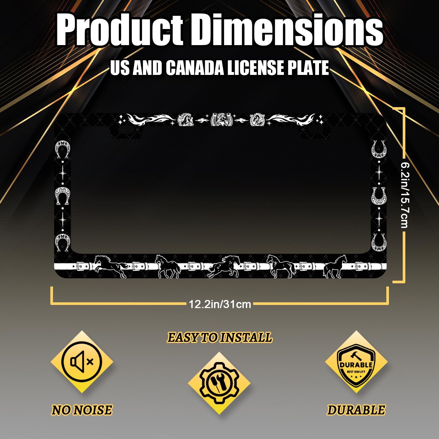 Horse License Plate Frame Horseshoe License Plate Holder for Front and Rear Car Tags Stainless Steel Auto Parts Animal Funny License Plate for Men Women Decoration with Screws 12" x 6" s