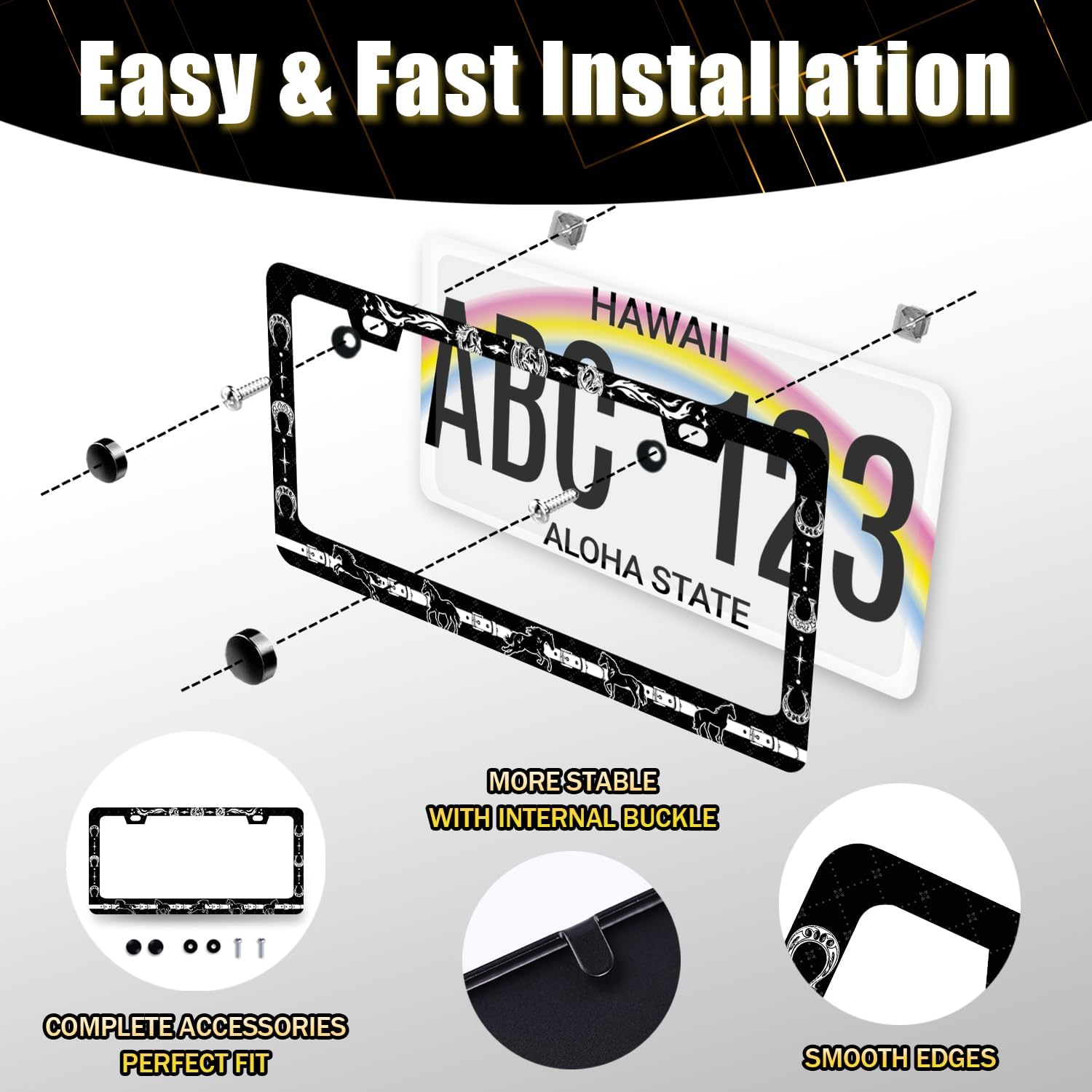 - This license plate Frame with holes, including Accessories: screws, nuts and washers. Easy to install.you don’t need to buy any other hardware or fasteners. Anti-theft caps are also included