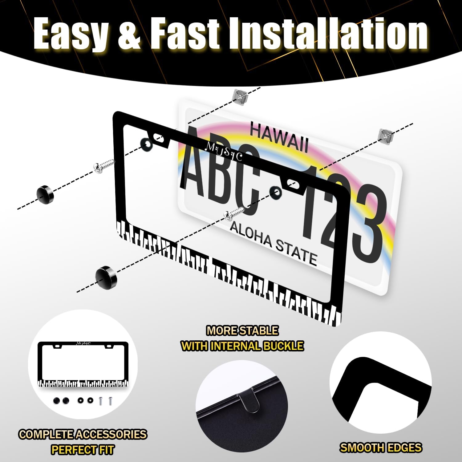 Piano Music License Plate Frame Music Notes License Plate Holder Stainless Steel Front and Rear Car Tags Auto Parts Funny License Plate Decoration with Screws for Men Women s 12.2"x 6.2"