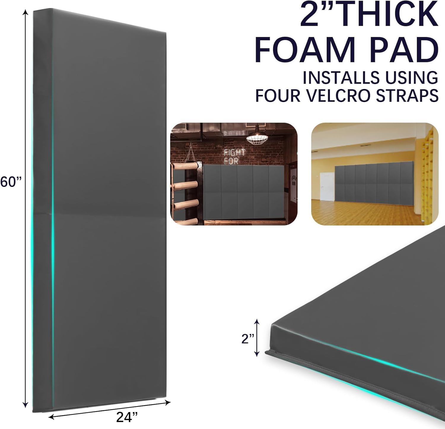 - 💯【Extensive coverage and value】 : Each package includes one smooth Dark grey sports protective wall pads, providing a total coverage area of 10 square feet. With pad sizes of 60"x24"x2" they can accommodate various wall sizes, ensuring comprehensive protection.