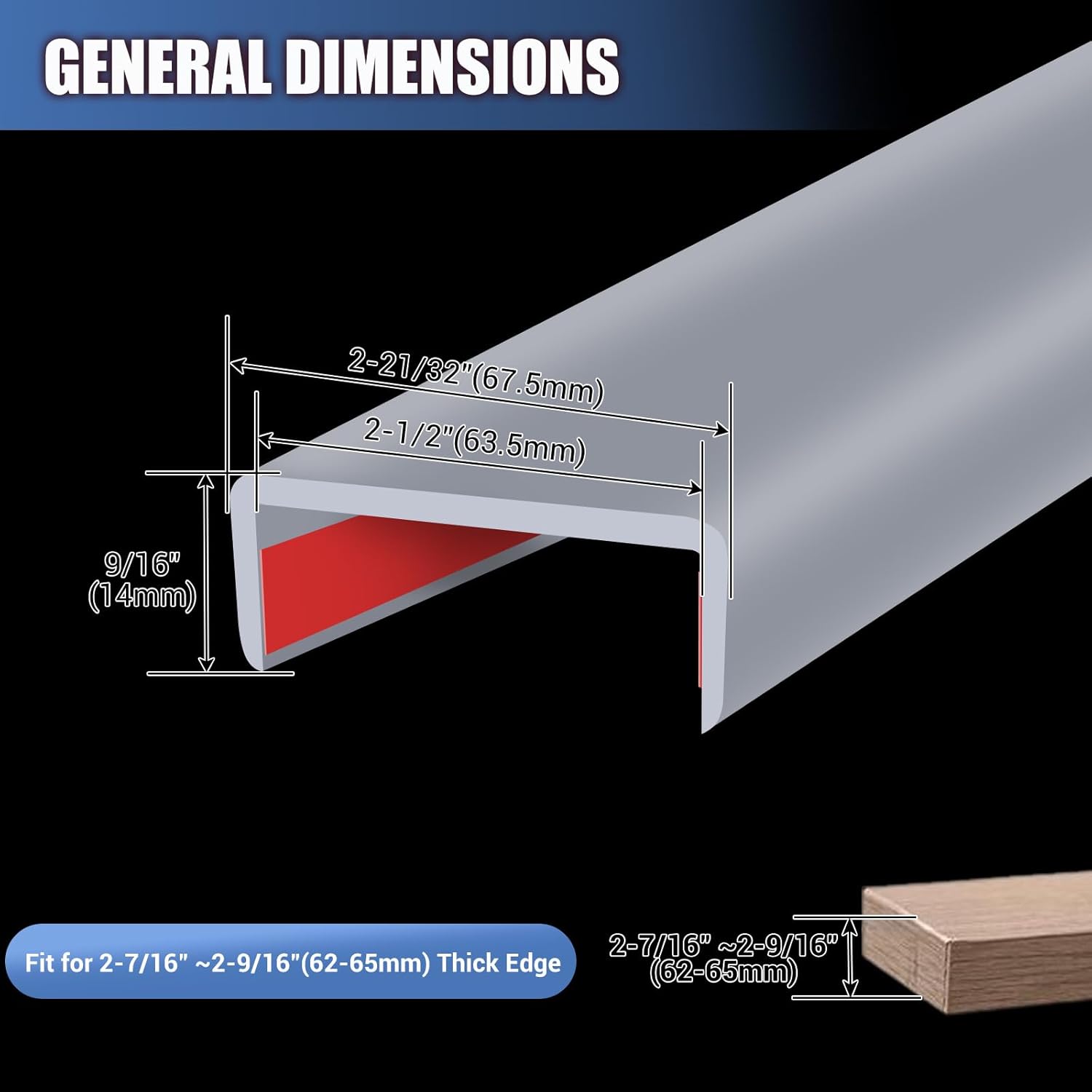Rubber Edge Trim, Flexible Self Adhesive U Shaped Peel and Stick Edge Banding, 2-1/2"(63.5mm) U Channel Edge Protector, Edge Guards for Woods, Furniture, 20Ft, Grey Color