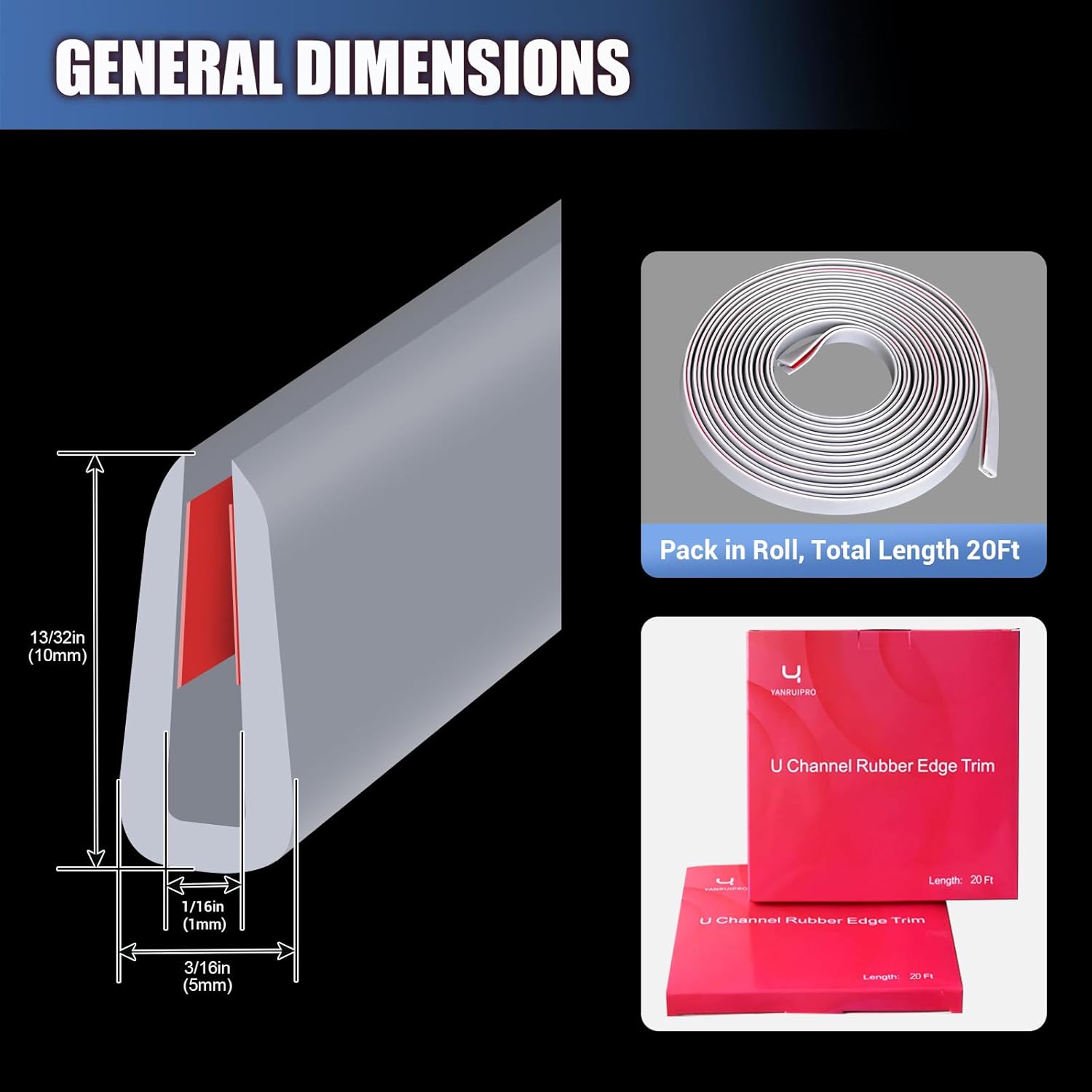 - High Quality EPDM Rubber: Durable and not easy to age, extremely hard wearing and washable. EPDM rubber material edge trim is not easily broken down by ultraviolet light and ozone, has better thermal stability, radiation resistance and weather resistance.