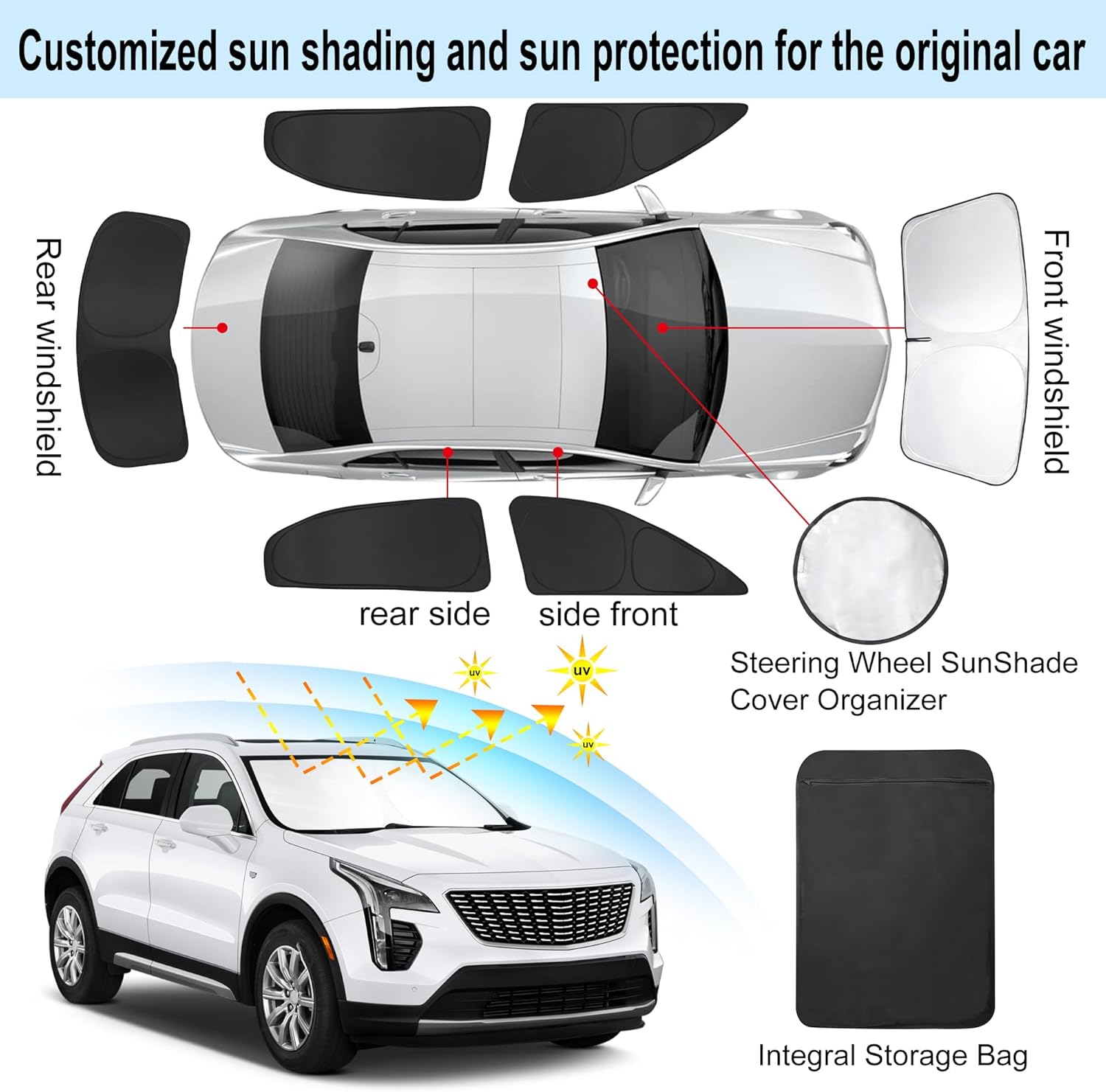 - Customized Design:The sun shade custom fit for Cadillac XT4 2019-2024 2025.Our window shade is according to the car size design,perfectly fit your car and does not need to trim.windshield sun shade solve the problem of light leakage and incompatibility of the old umbrellas.The sunshade designed for Cadillac XT4.