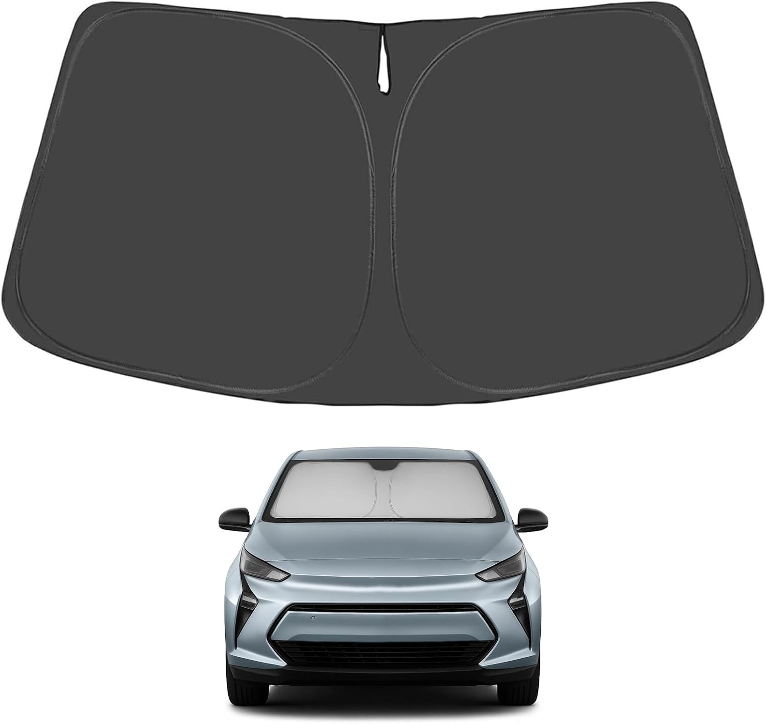 - Certified Sustainable. DESIGNED IN USA!!! Custom Design: The front windshield shade has been custom cut specifically for Chevrolet Chevy Bolt. Precise fit design and Reinforced steel rings make a precise and secure fit to the window, no need to use suction cups to hold it in place. It won't sag or collapse like other car heat shields. Fits for Chevrolet Chevy Bolt 2025 2024 2023 2022 2021 2020 2019 2018 2017.