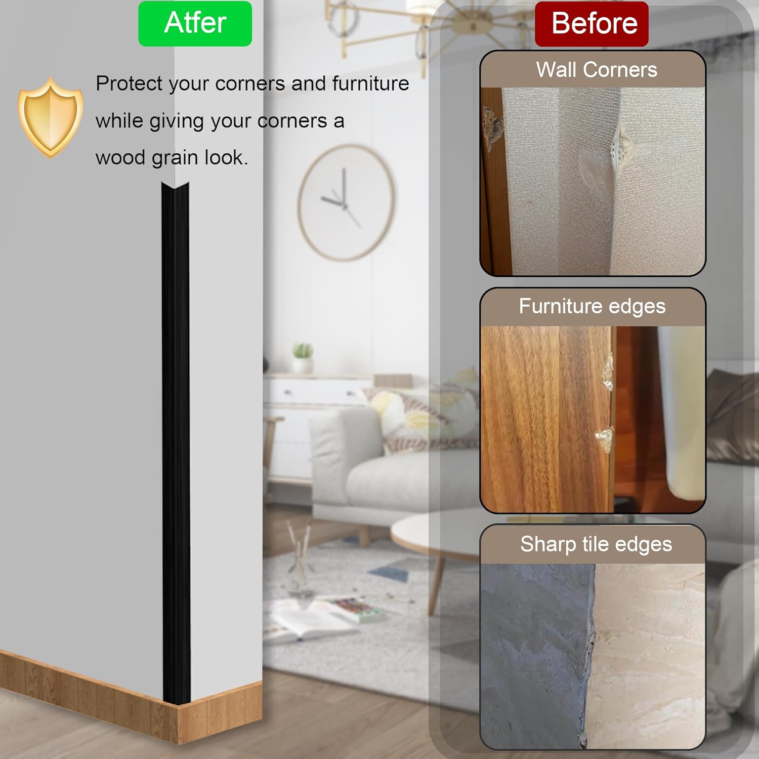 - 🏡Corner protectors can cover sharp edges, protect wall corners, and reduce damage caused by collisions. Widely used on wall edges, stairs, corridors, and can also be used as door frames, window frames, and mirror frames.