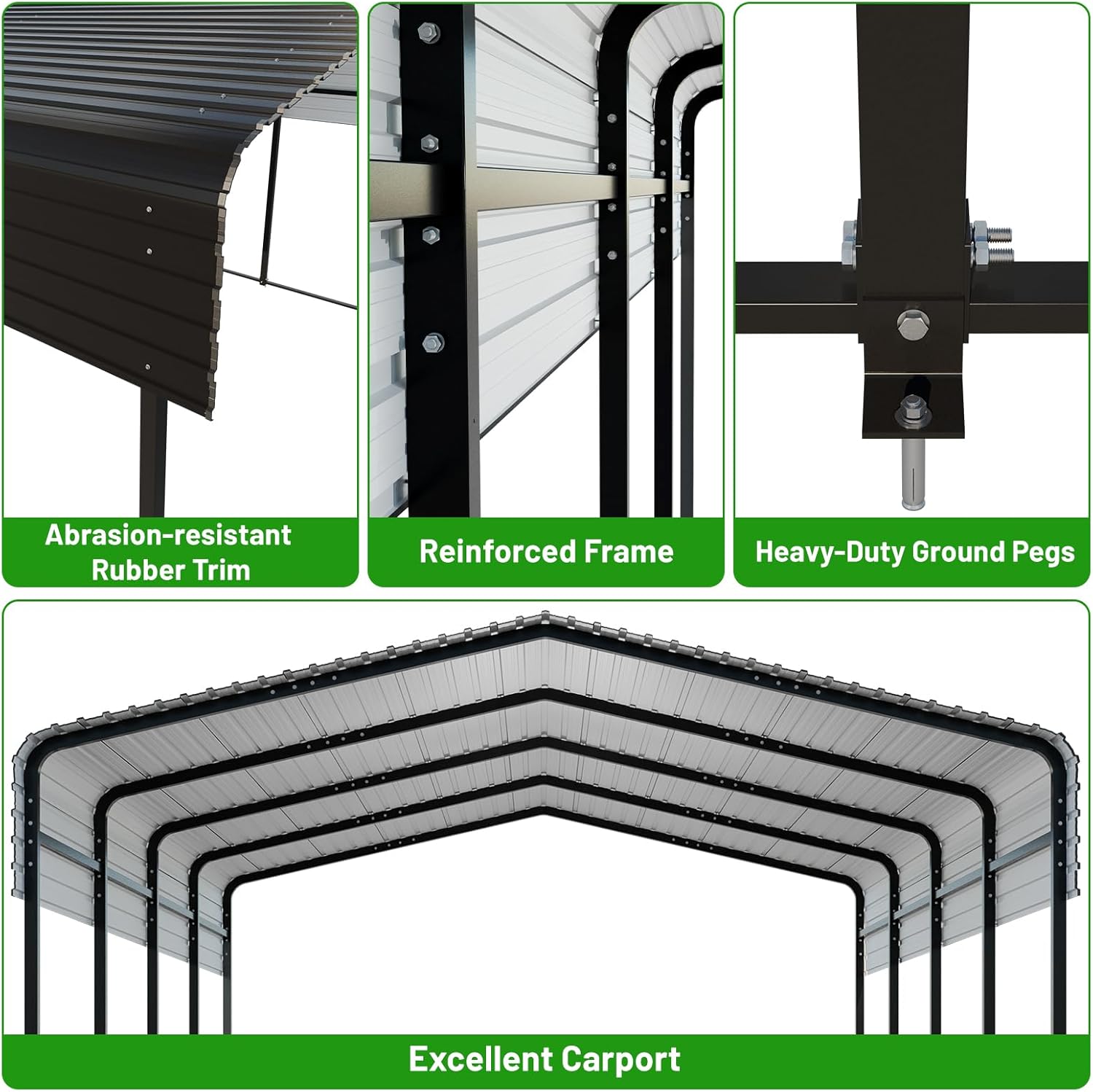 10 x 15 FT Metal Carport with Heavy Duty Galvanized Steel Roof & Durable Frame, Metal Car Garage, Sturdy Canopy Shelter for Car, Truck, Pickup, SUV, Tractor, and Boat