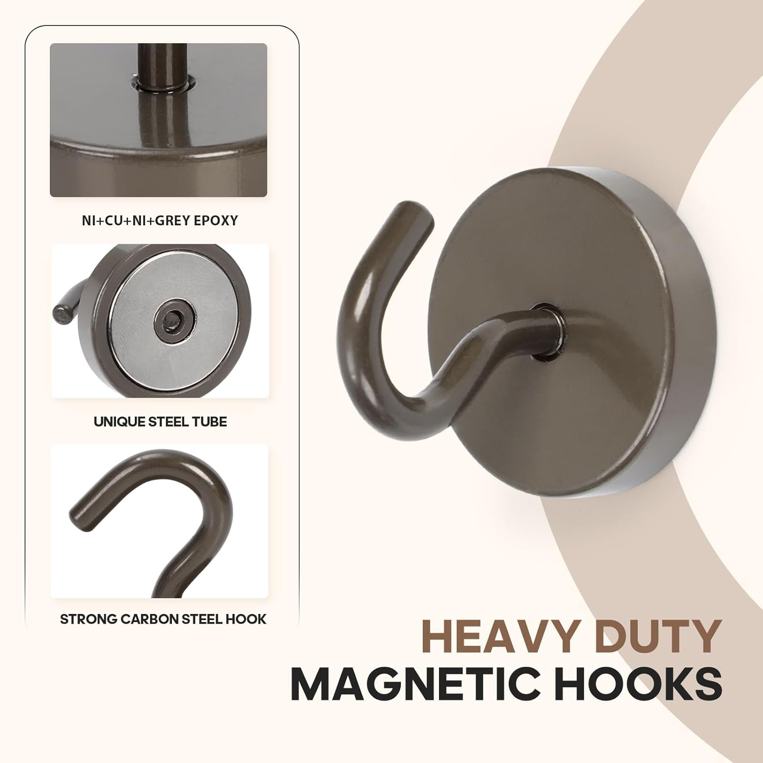 Neosmuk Magnetic Hooks, Cruise Ship Essentials, 120lb+ Heavy Duty Magnetic Hooks for Cruise Cabins, Refrigerator, Grill, Hanging, and Travel | Extra Strong Must-Haves Magnet Hook,Brown, Pack of 10