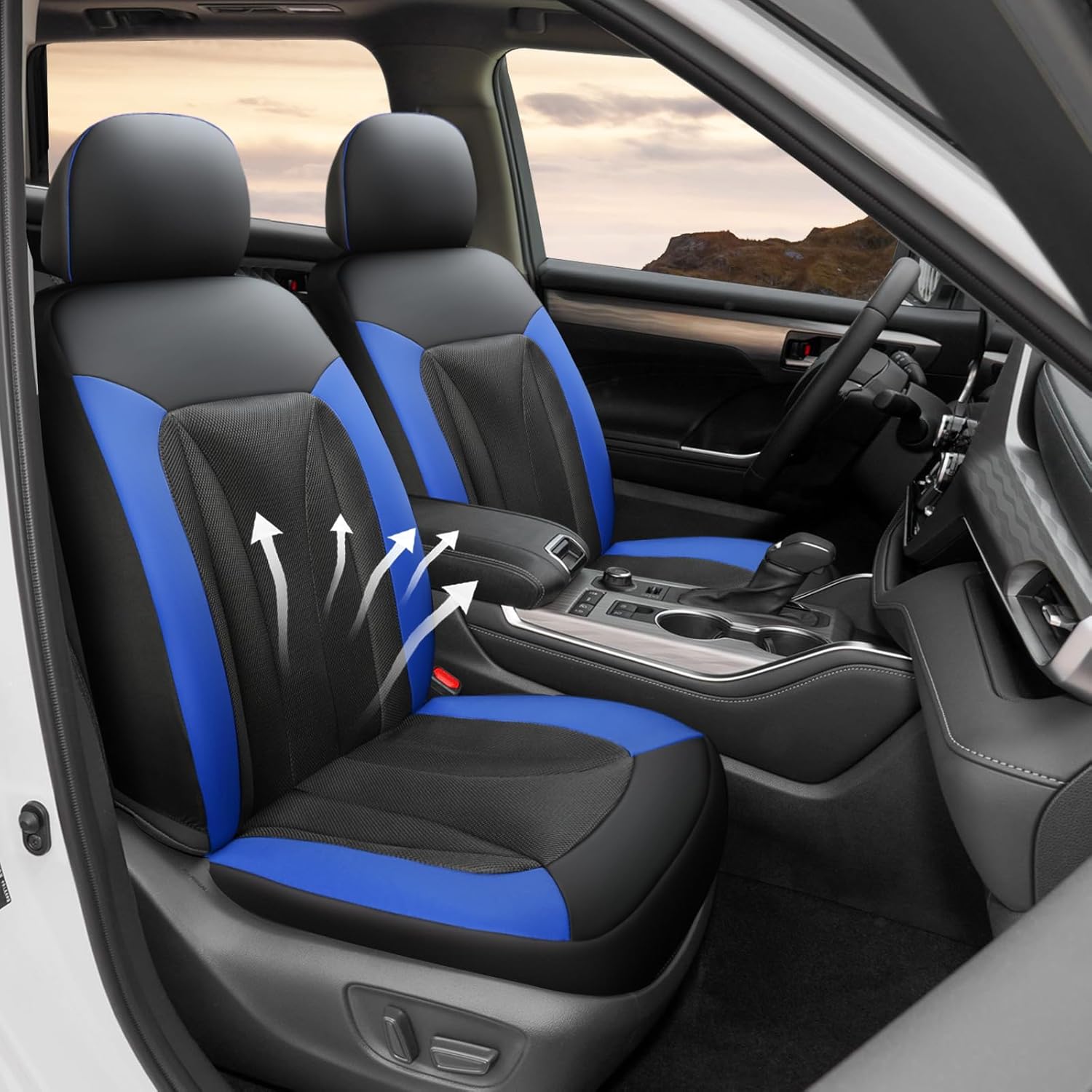 GIANT PANDA Front Car Seat Cover Custom Fit Toyota, 3D Air Mesh Car Seat Covers for Toyota Rav4 Camry Highlander Corolla Prius (Blue+Black) 2-Pack