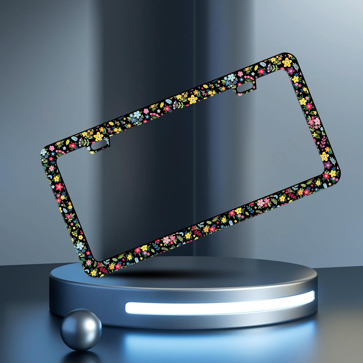 Colorful Folk Floral License Plate Frame Flower License Plate Holder Personalise Stainless Steel Funny Design Compatible with Standard License Plate Frames for USA and Canada 6 X 12 Inch with Screws