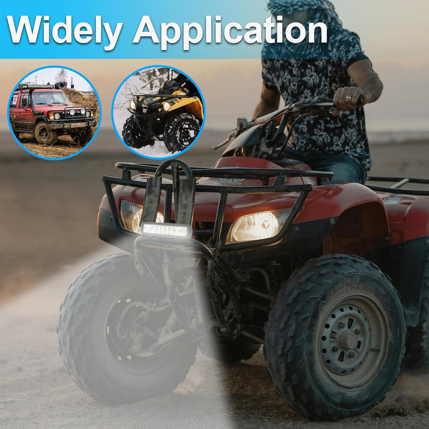 - Spot & Flood Combo Design: The light bar features a 10-LED spotlight with a 30° spot reflector for high-focus, long-range illumination and a 6-LED floodlight with a 120° flood for wider illumination. The combination of the two lights provides an enhanced lighting effect