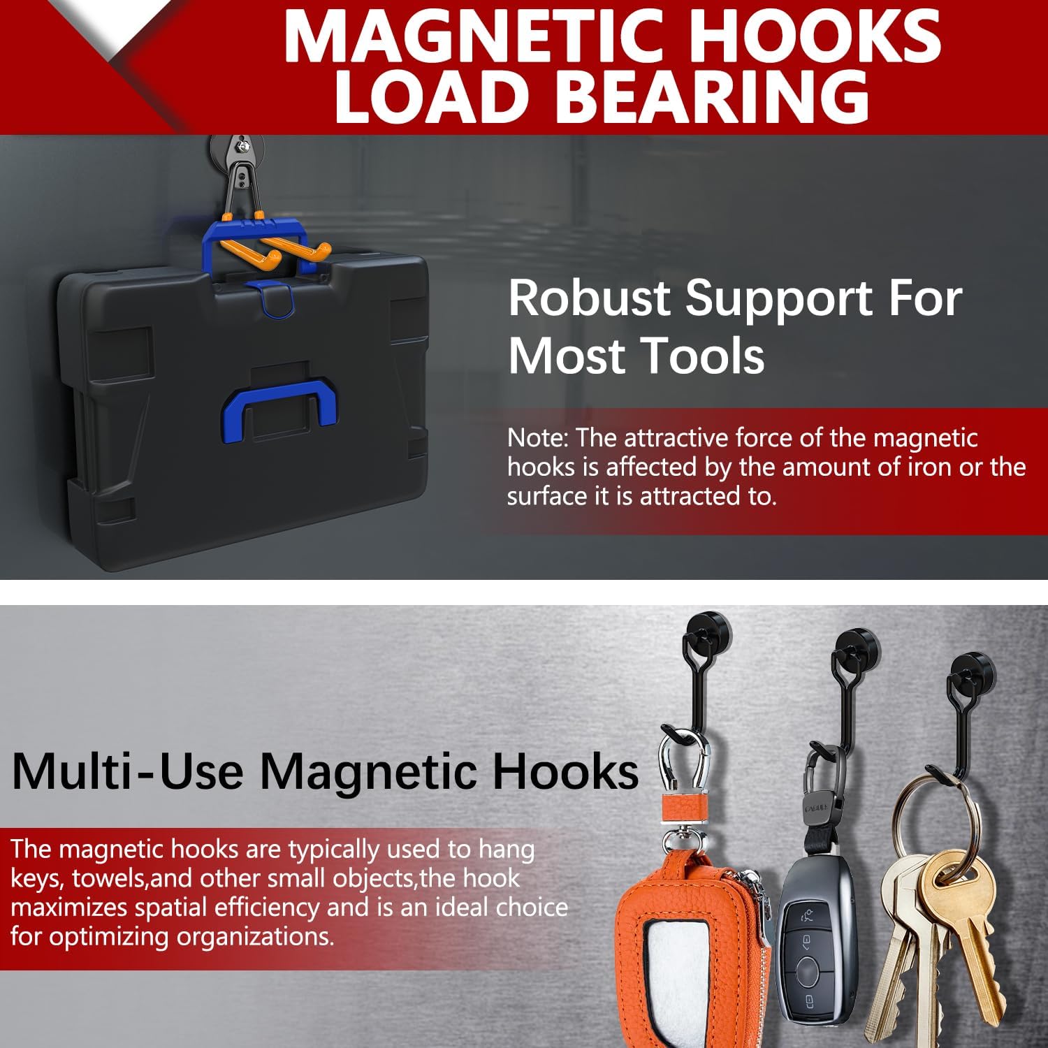 - Space Saving Heavy Duty Magnetic Hook: Our strong magnetic hooks offer an ideal solution for efficiently utilizing vertical garage storage space. The heavy duty magnetic hook is portable,versatile for use in garages, kitchens, offices, warehouses, gardens, and basements. These magnet hooks heavy duty help to reduce clutter and maximize available space to hang hoses, ropes, shovels, wires, cables, rakes and more