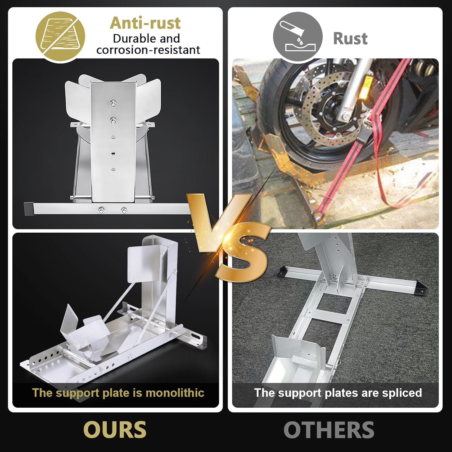 - Stainless Steel:CXRCY Motorcycle Wheel chock is made of stainless steel, which is more durable than iron and stronger than aluminum alloy. Ideal for garage and outdoor use.