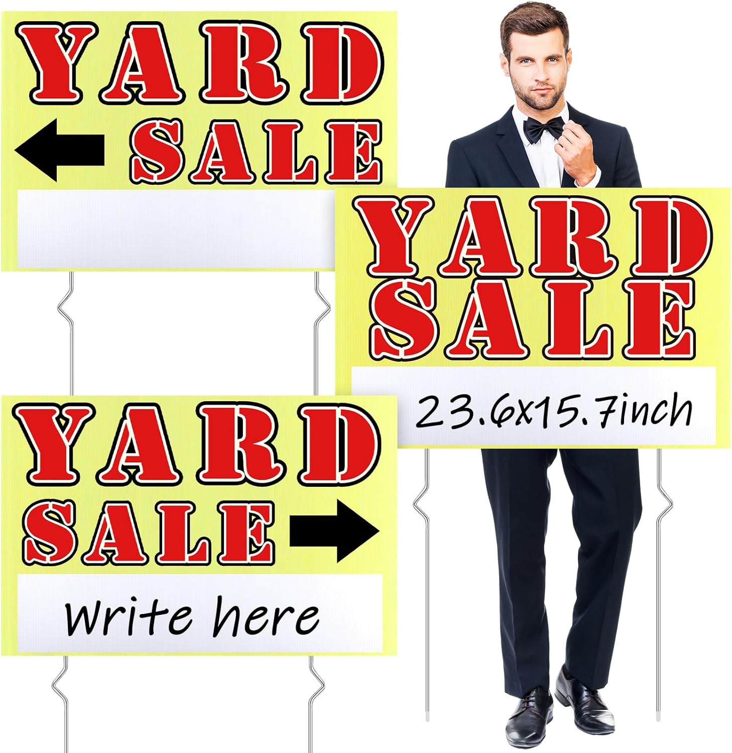 Marsui 3 Pcs Yard Sale Sign 23.6 x 15.7 Inch Double Sided Yard Sale Sign with Metal Stake and Directional Arrow for Outdoor