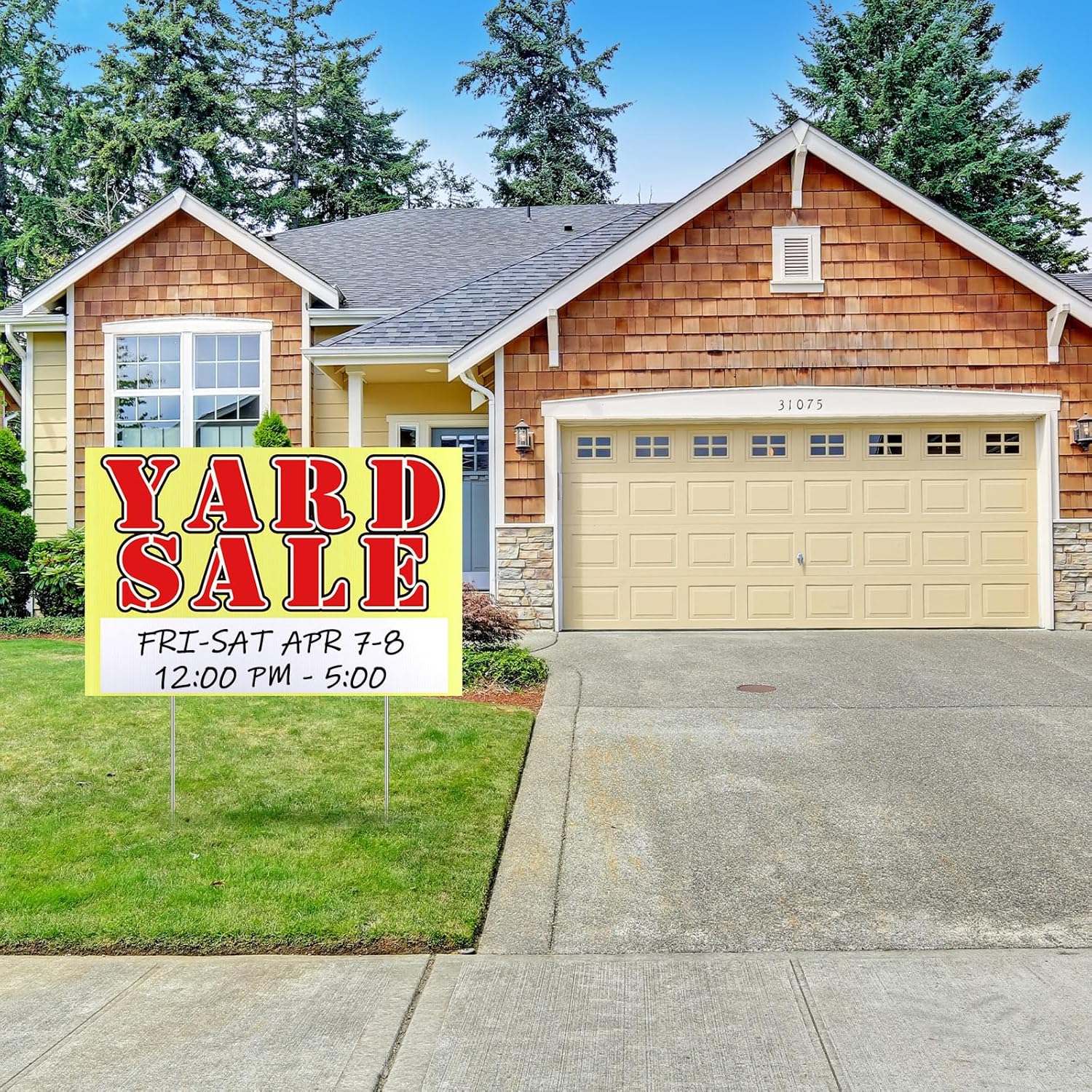 - Double Sided Design: Each sign sports a double sided design, maximizing space for details including your address, contact number, sale date, and more. Enhance your visibility and connect effectively with prospective customers with our user friendly signs.