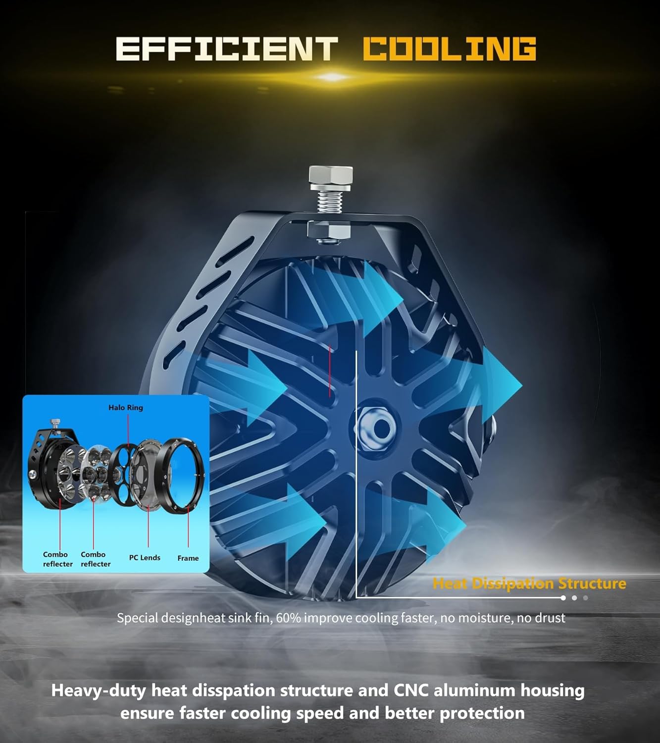 - High quality: Our motorcycle fog led light main lamp body made of aluminium alloy, CNC one-piece moulding process, the driving led light will not fade or corrode under prolonged sunlight and rain, IP68 waterproof rating will not be affected by rain or snow. The honeycomb design facilitates heat dissipation and cooling of the LED, effectively preventing the chip from overheating and burning out, extending the working light life, high quality chips make with high light transmission