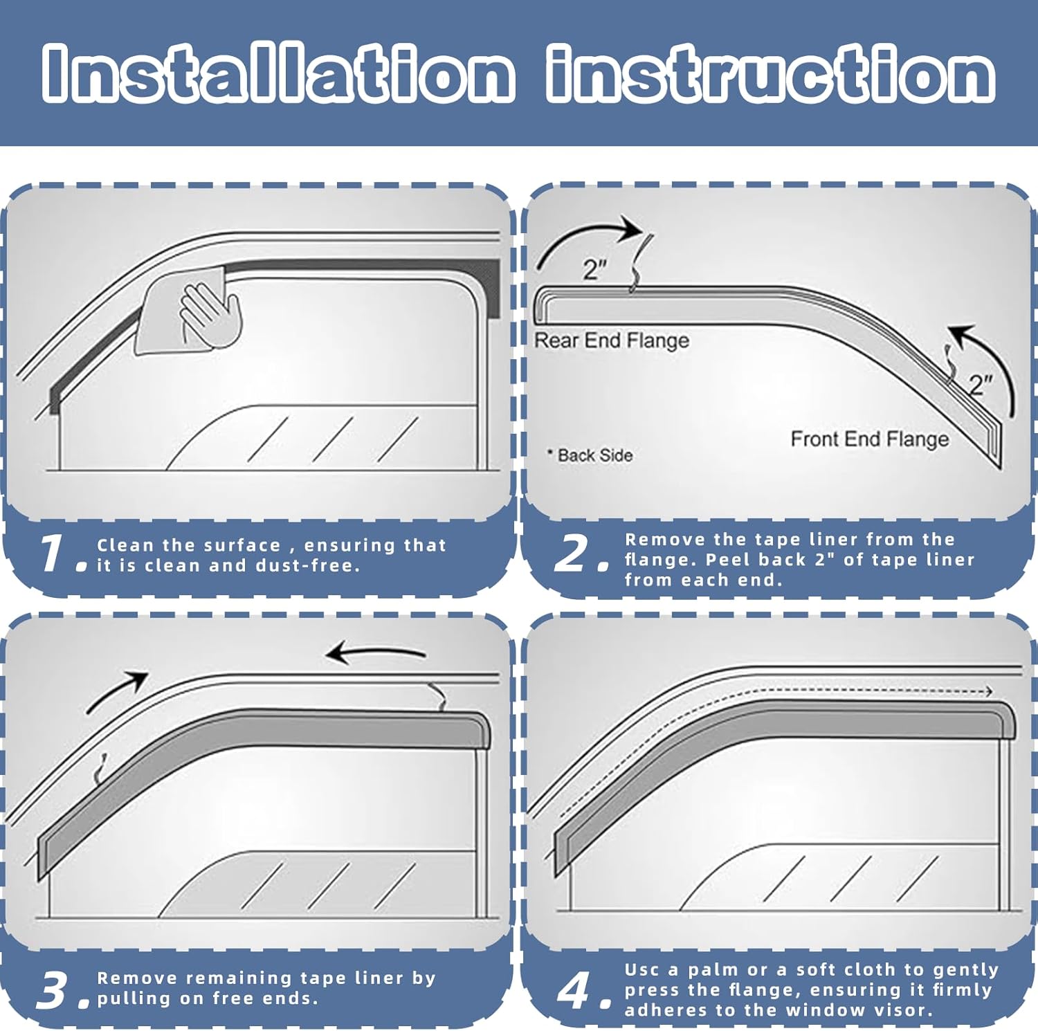 - 【Installation】-No need for any drilling or special tool. Our Window Visors with tape for extra-strong grip, no drilling is needed ,and no disturbed in the windows up and down. [NOTE: Avoid washing your car for the first 24 hours after installation.