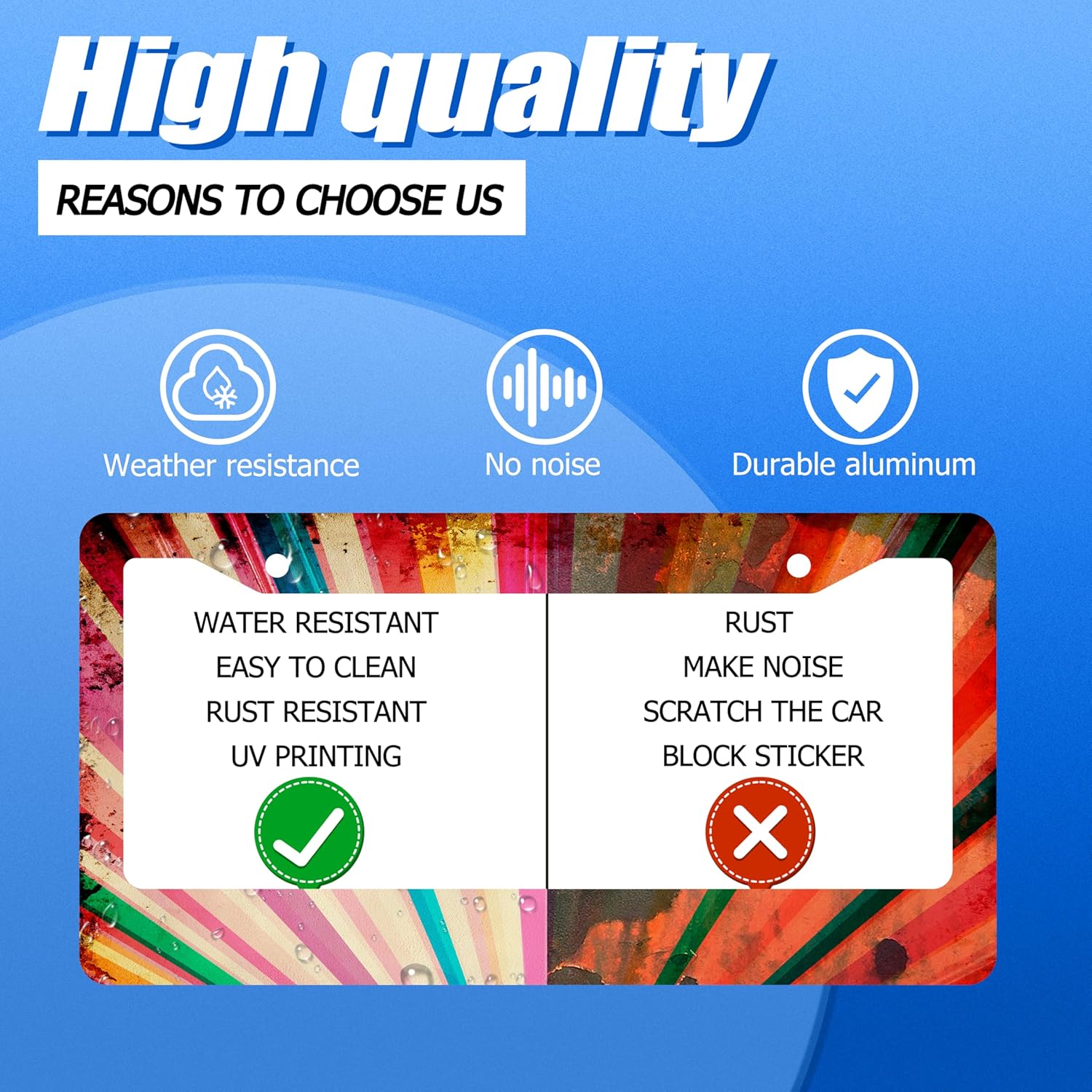 Retro Rainbow License Plate Frame Hippie Rainbow Stripes License Plate Stainless Steel Funny License Plate Holder Colorful Car Accessories Decoration With Screws Fits Standard Vehicles Size 12.3"x6.3"