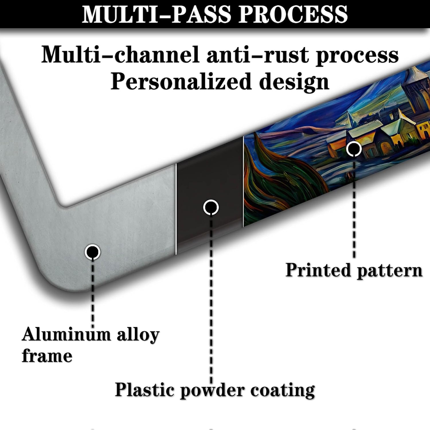 License Plate Frame Multicolor License Plate Holder The Starry Night Universal Aluminum Car Accessory 2 Pack with Screw Covers Set
