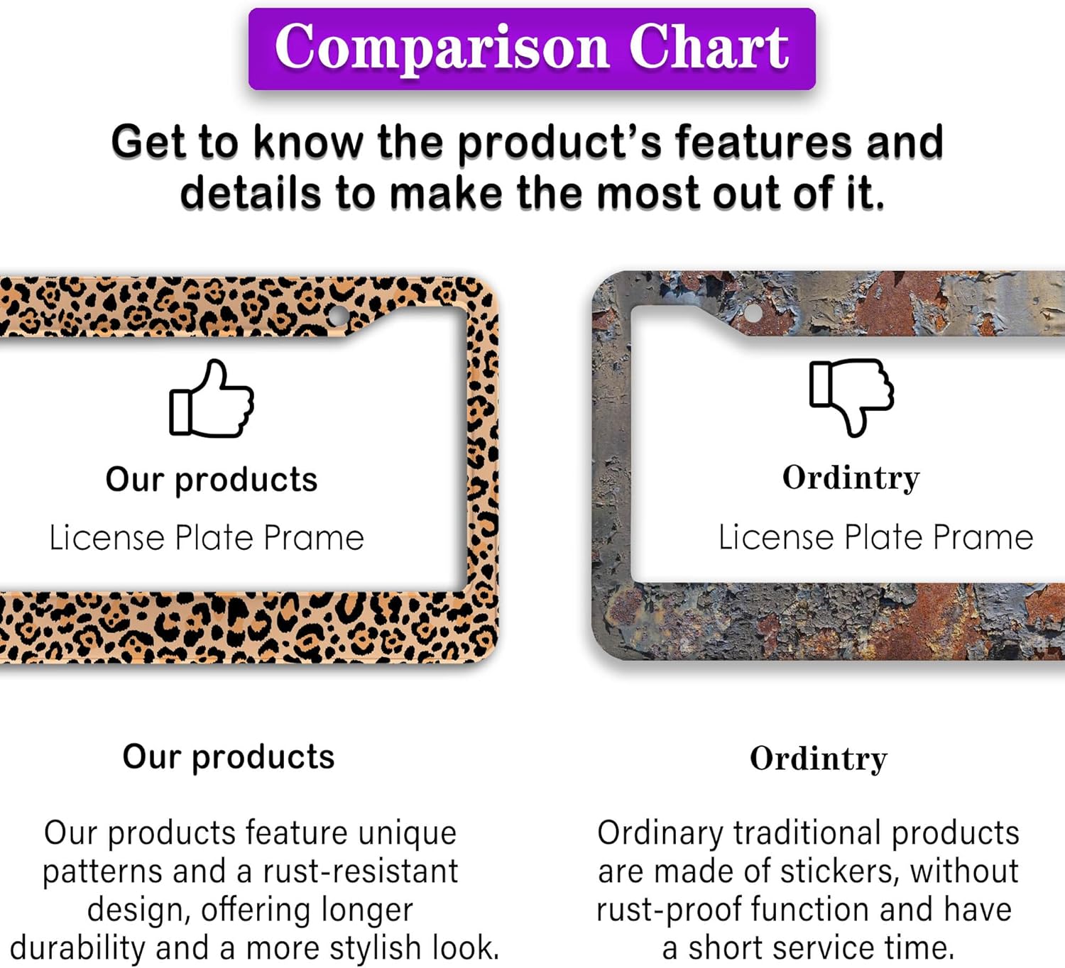 License Plate Frames Leopard Print Fun License Plate Frame Protector Cute Cheetah Texture Aluminum Metal Car Accessory 2 Pack with Screw Covers Set