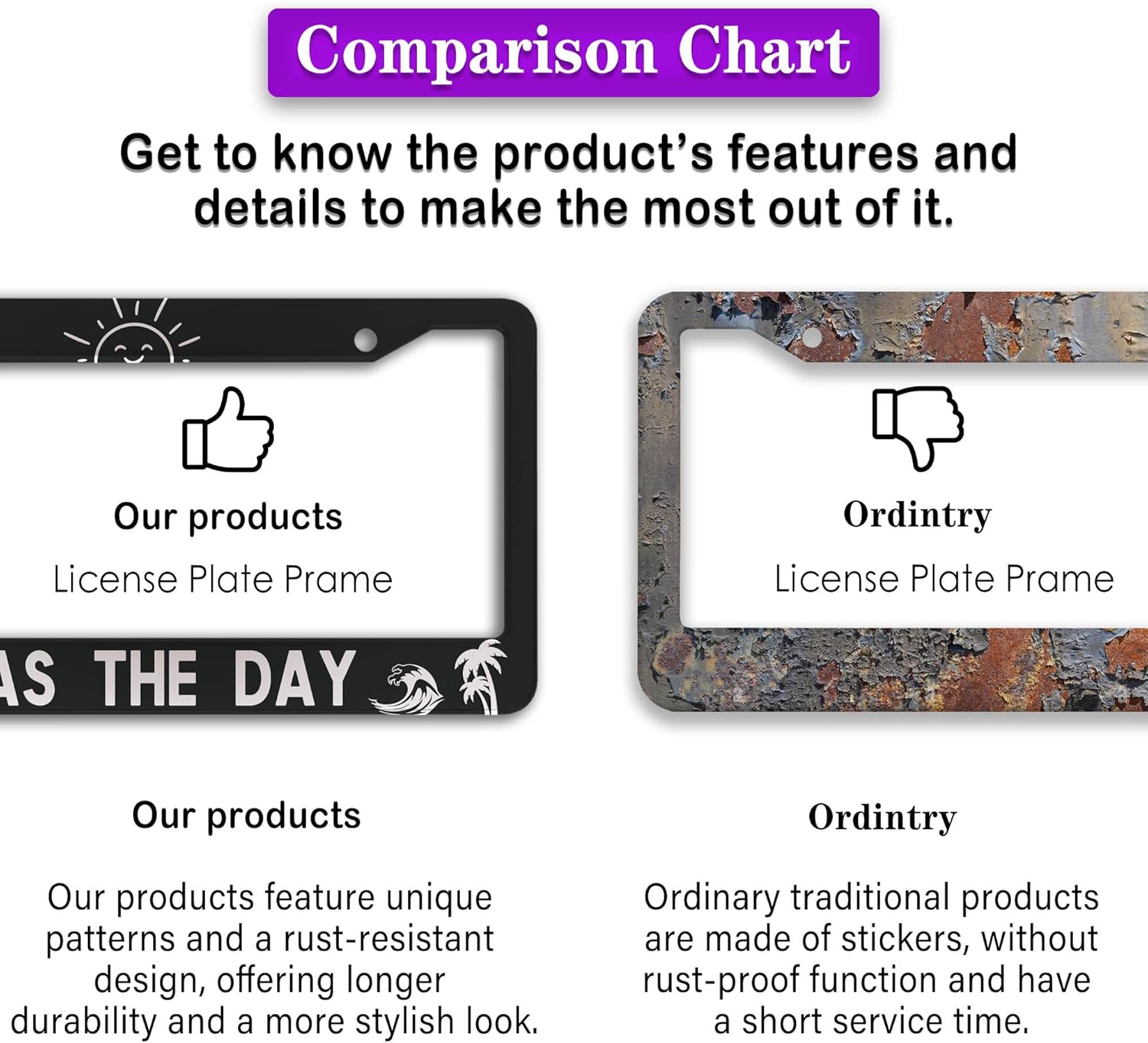 - FUNNY DESIGN: Featuring a unique and customized design, this license plate frame creates an eye-catching and bold statement for your vehicle. Not only does it add a touch of personality to your car, but it also makes for a great holiday gift, souvenir, or decorative piece for family, friends, and colleagues. Elevate your vehicle's style while sharing a laugh!