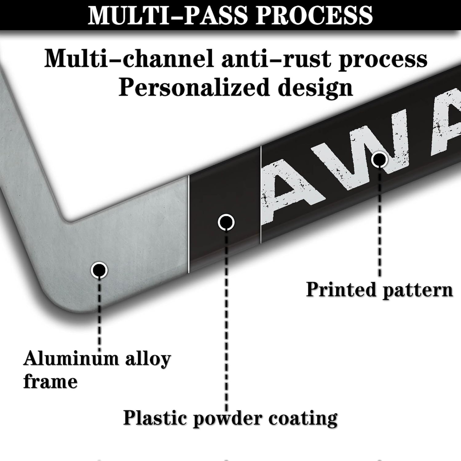 - ALUMINUM FRAME: This License Plate Frame is crafted from high-quality aluminum that is resistant to corrosion, rust, and harsh weather conditions. Its rugged reliability design ensures a long lifespan, making it capable of withstanding car washes and extreme weather, providing you with a reliable and stylish solution for your vehicle.