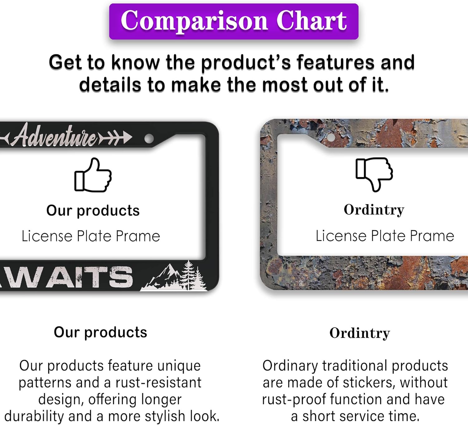 - FUNNY DESIGN: Featuring a unique and customized design, this license plate frame creates an eye-catching and bold statement for your vehicle. Not only does it add a touch of personality to your car, but it also makes for a great holiday gift, souvenir, or decorative piece for family, friends, and colleagues. Elevate your vehicle's style while sharing a laugh!