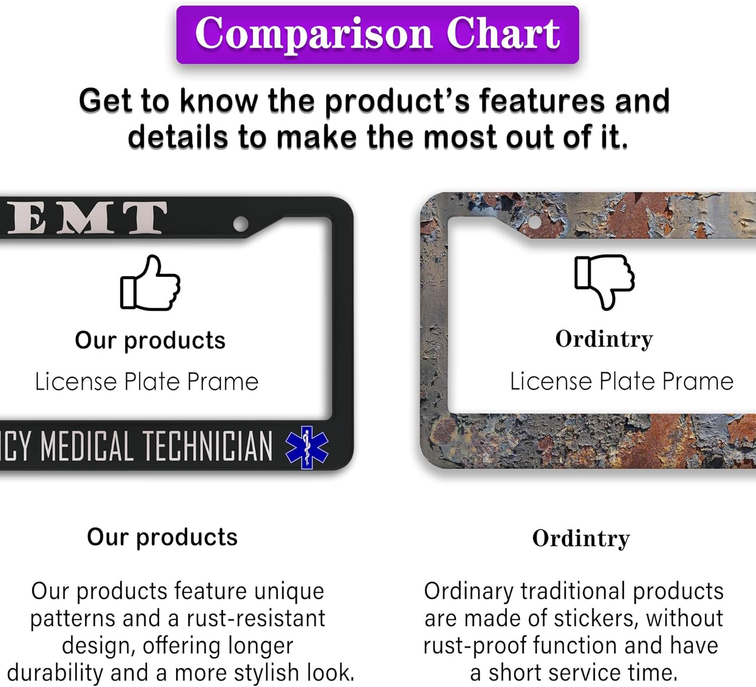 License Plate Bracket Black and White License Plate Frames EMT Emergency Medical Technician Aluminum Metal Car Accessory 2 Pack with Screw Covers Set