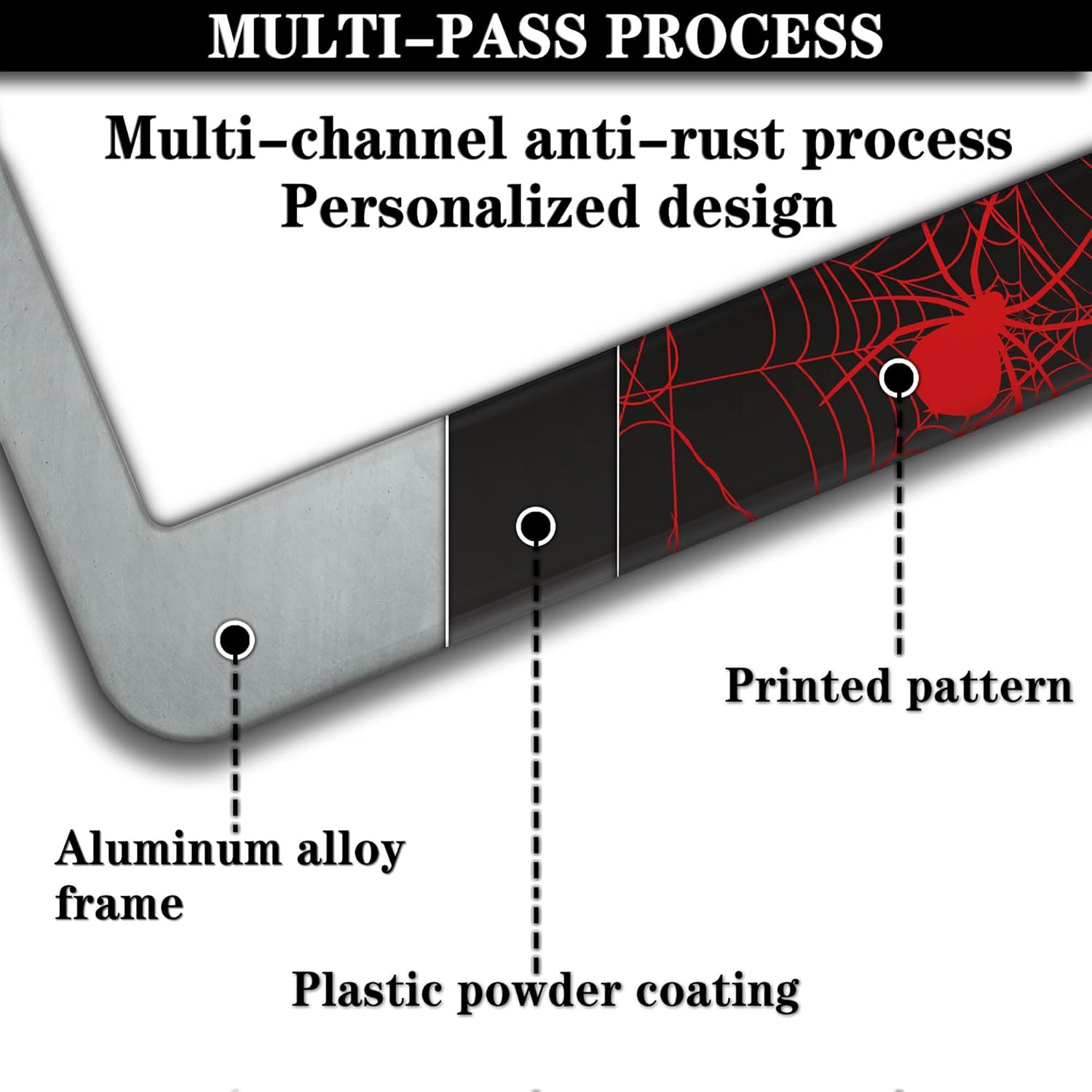 Custom License Plate Frame Red and Black License Plate Frames Red Spider Web Universal Aluminum Car Accessory 2 Pack with Screw Covers Set
