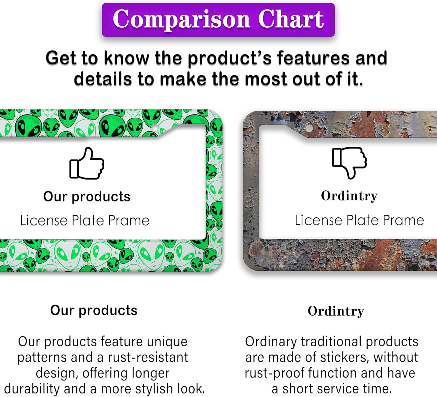 - FUNNY DESIGN: Featuring a unique and customized design, this license plate frame creates an eye-catching and bold statement for your vehicle. Not only does it add a touch of personality to your car, but it also makes for a great holiday gift, souvenir, or decorative piece for family, friends, and colleagues. Elevate your vehicle's style while sharing a laugh!