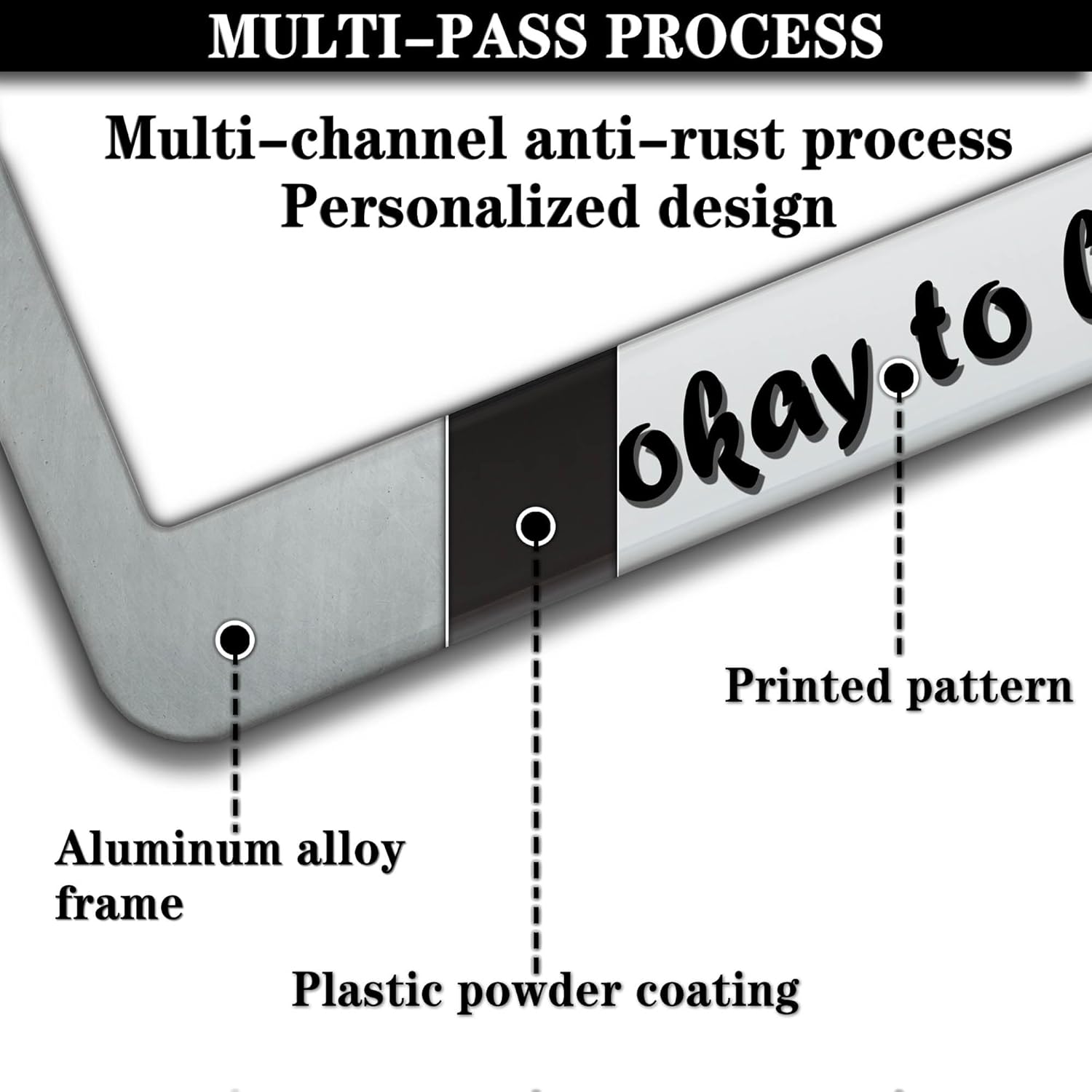 - FUNNY DESIGN: Featuring a unique and customized design, this license plate frame creates an eye-catching and bold statement for your vehicle. Not only does it add a touch of personality to your car, but it also makes for a great holiday gift, souvenir, or decorative piece for family, friends, and colleagues. Elevate your vehicle's style while sharing a laugh!