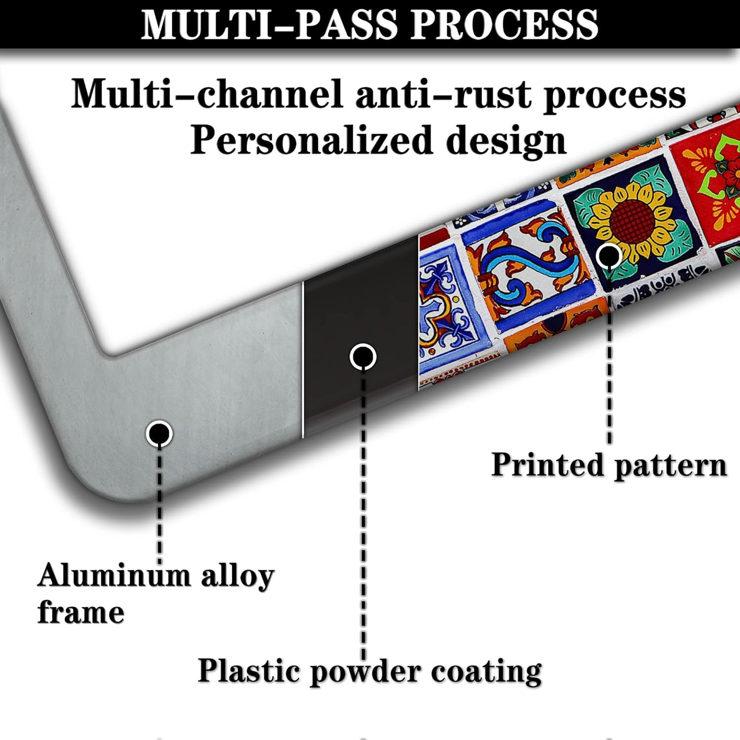 License Plate Protector for Women Multicolor License Plate Frames for Men Mexican Tiles Universal Aluminum Car Accessory 2 Pack with Screw Covers Set
