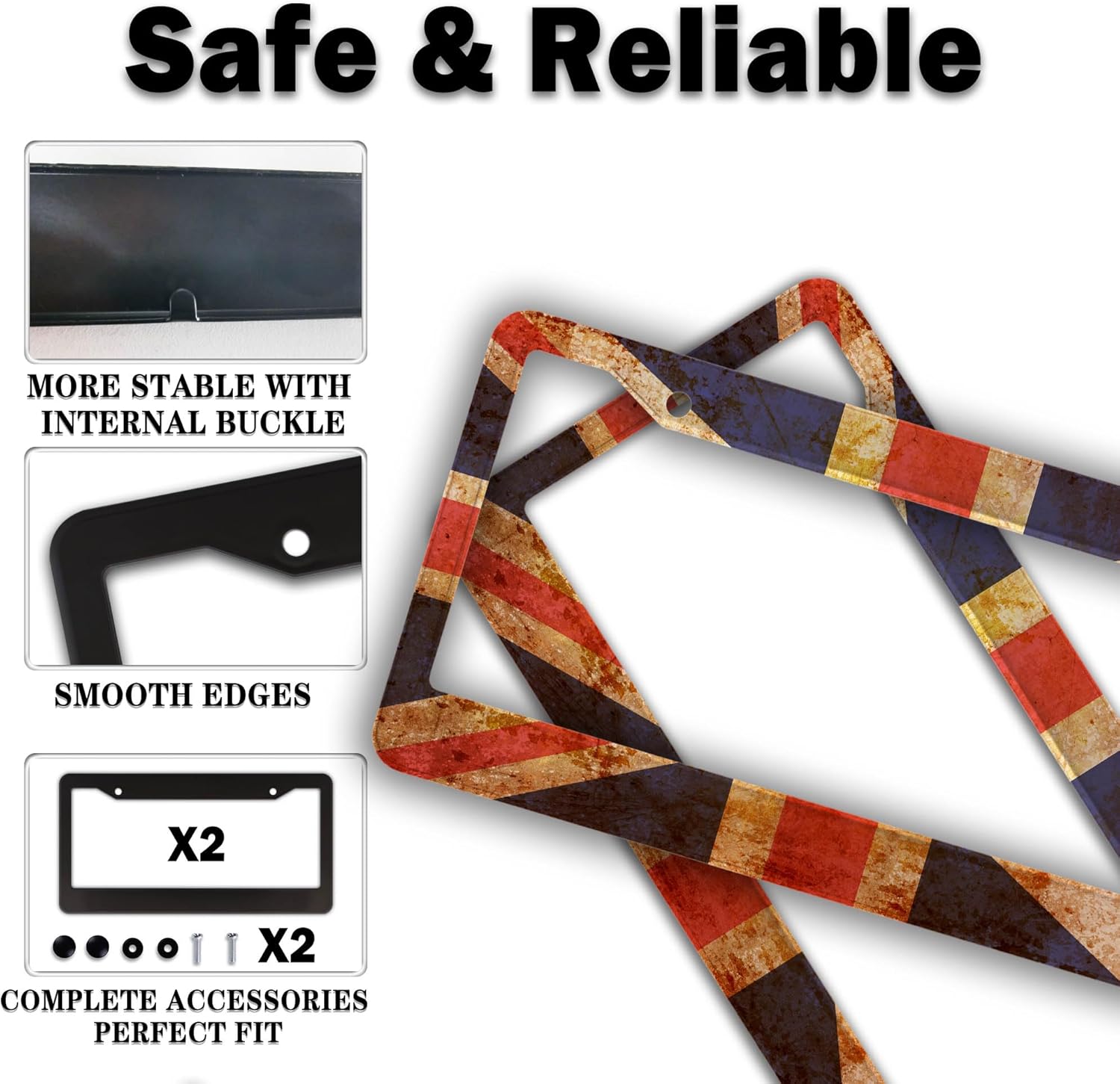 License Plate Frame Multicolor License Plate Protector Great Britain Vintage Old Flag Aluminum Metal Car Accessory 2 Pack with Screw Covers Set
