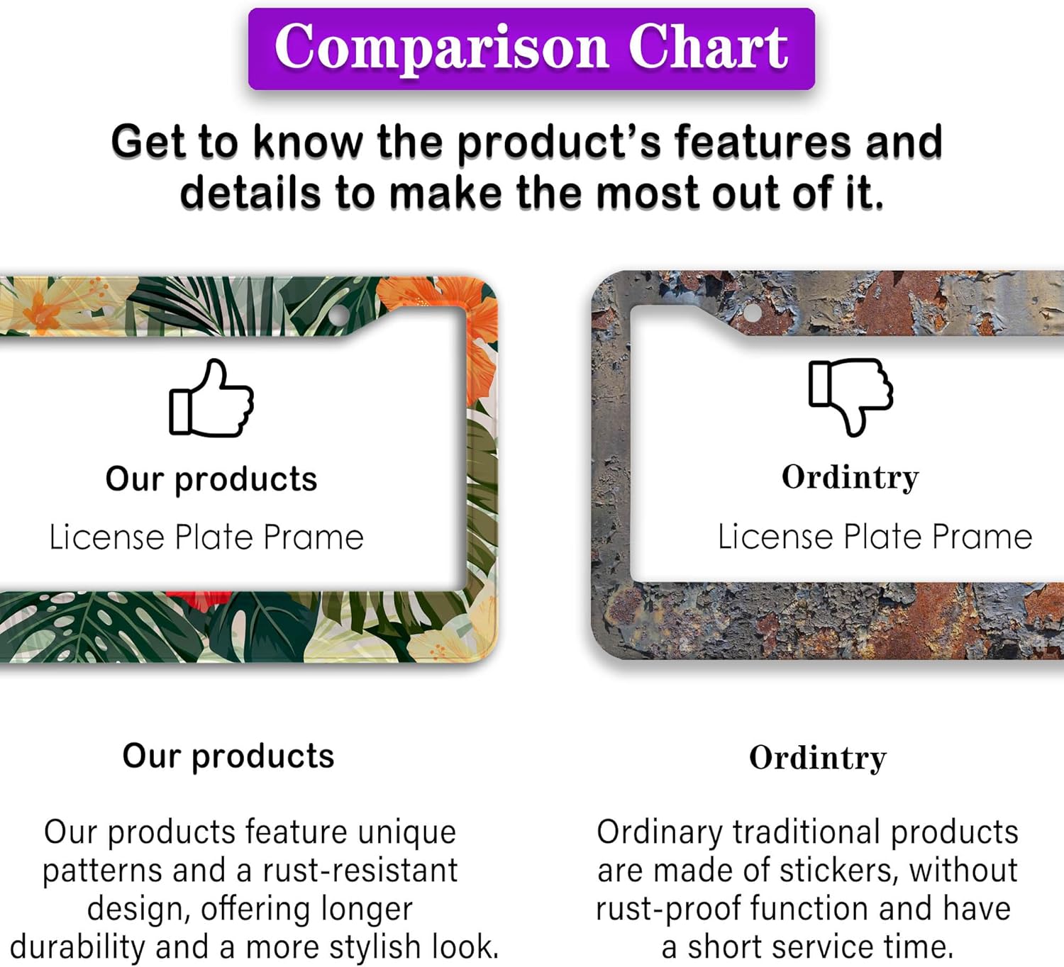 - ALUMINUM FRAME: This License Plate Frame is crafted from high-quality aluminum that is resistant to corrosion, rust, and harsh weather conditions. Its rugged reliability design ensures a long lifespan, making it capable of withstanding car washes and extreme weather, providing you with a reliable and stylish solution for your vehicle.
