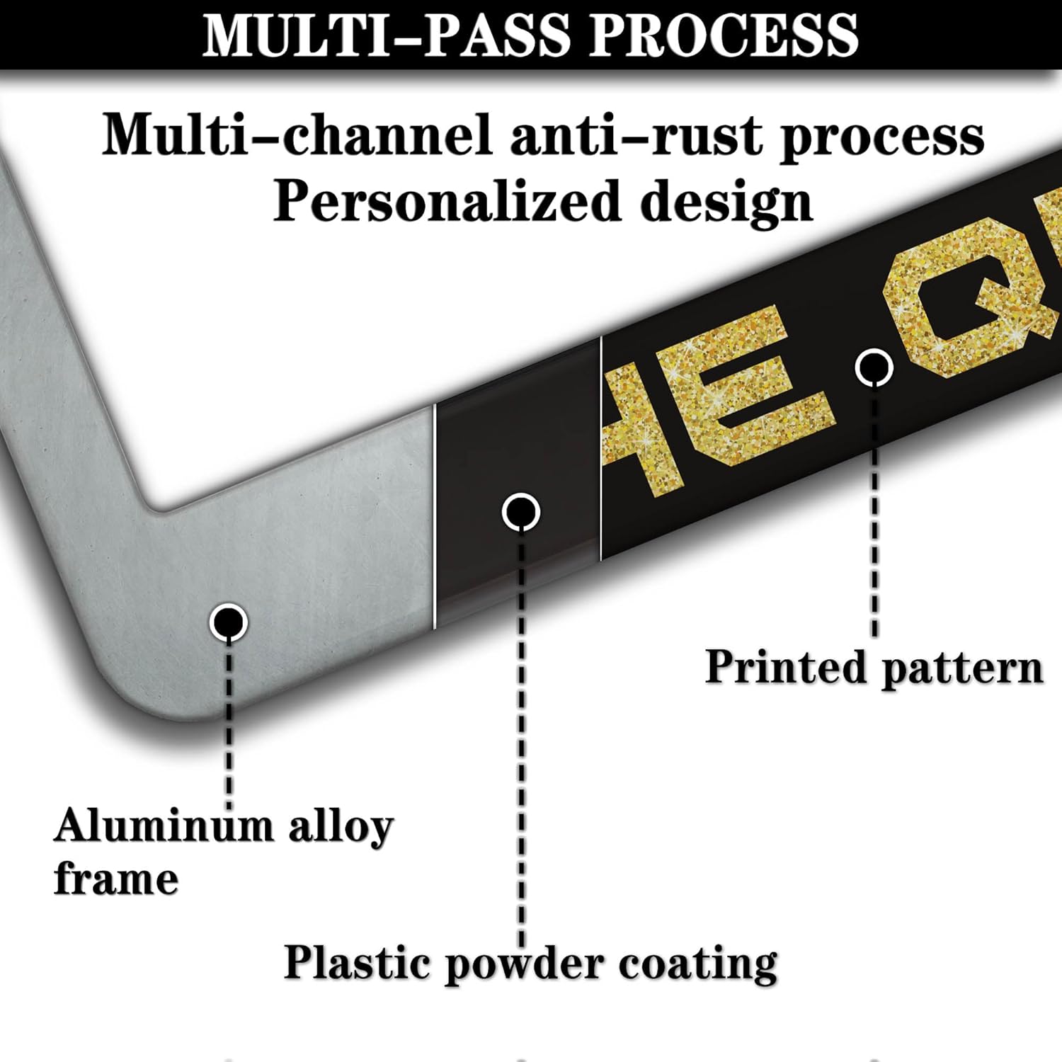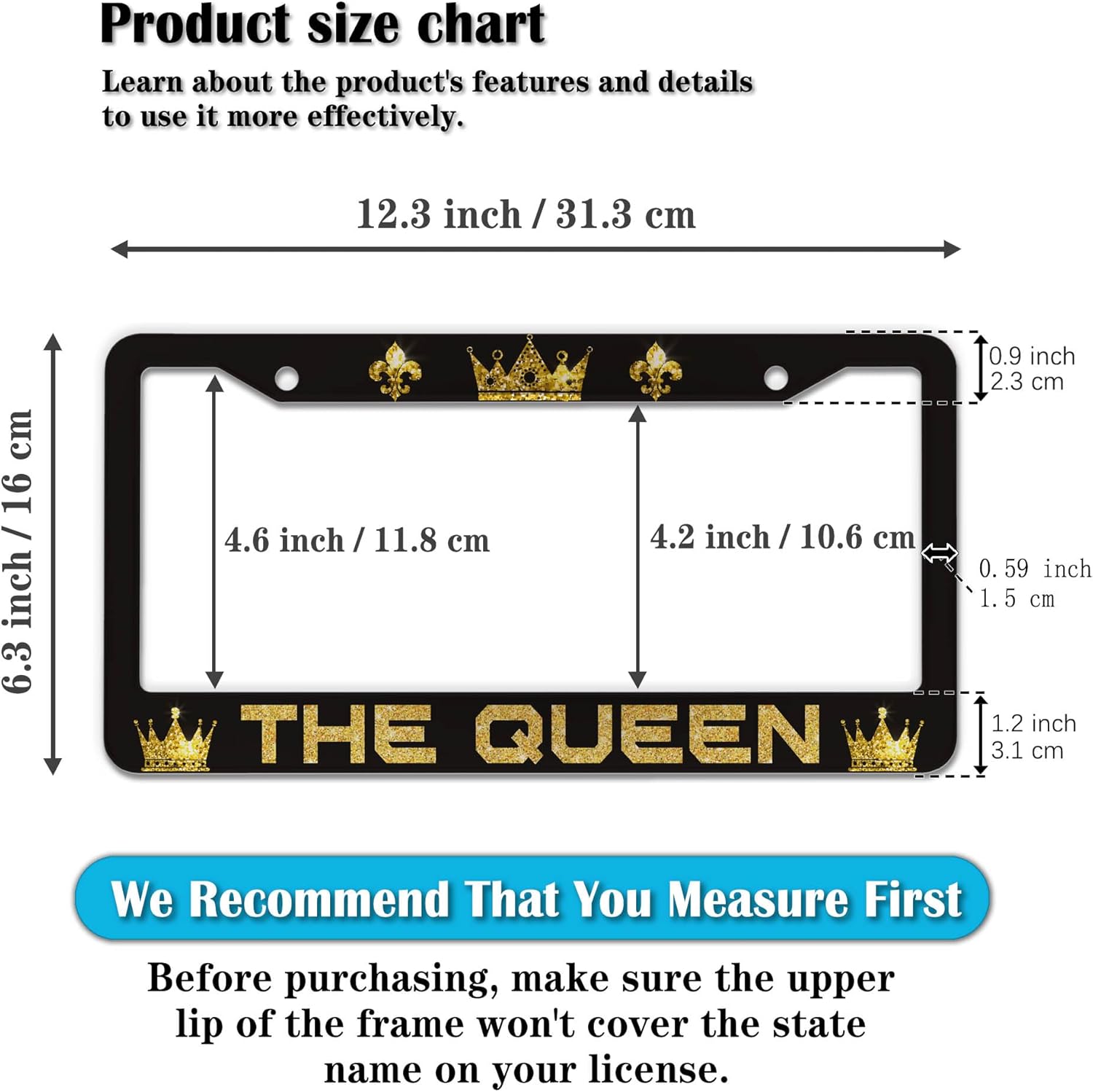 License Plate Frames Black Yellow Automotive Exterior Accessories The Queen Universal Aluminum Car Accessory 2 Pack with Screw Covers Set