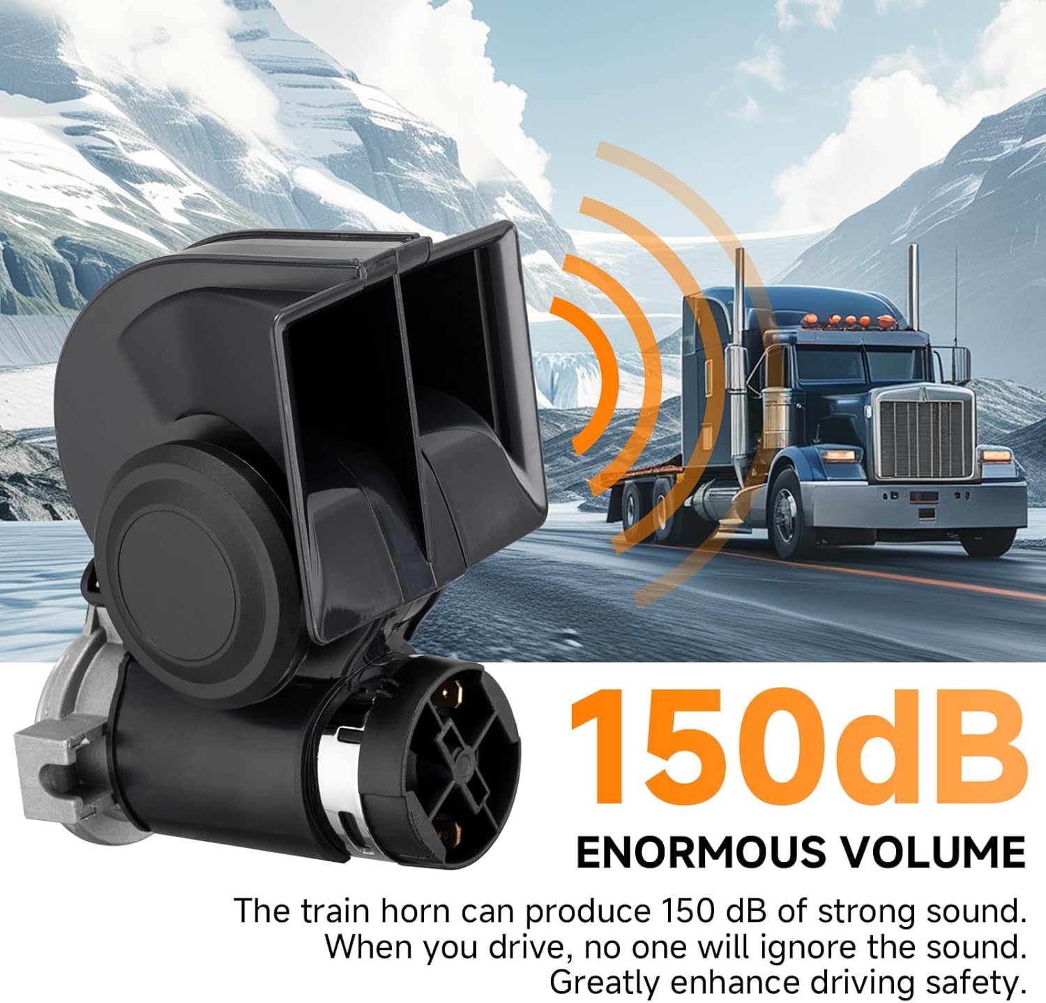 Pack of 2 Car Horn,Train Horns for Truck,Super High Pitched Train Horn for Car, Waterproof Snail Horns for Motorcycles, Cars, Trucks,Trains and Ships