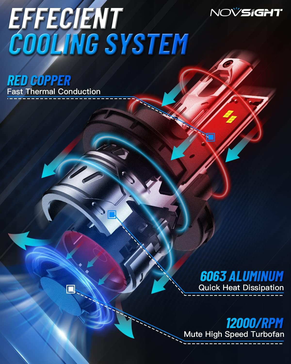 - No More Frequent Replacements - Enjoy long-lasting performance with built-in silent turbo fans and aviation-grade aluminum for optimal cooling. NOVSIGHT H13 fog bulbs boast an impressive lifespan of up to 100,000 hours—no more constant replacements