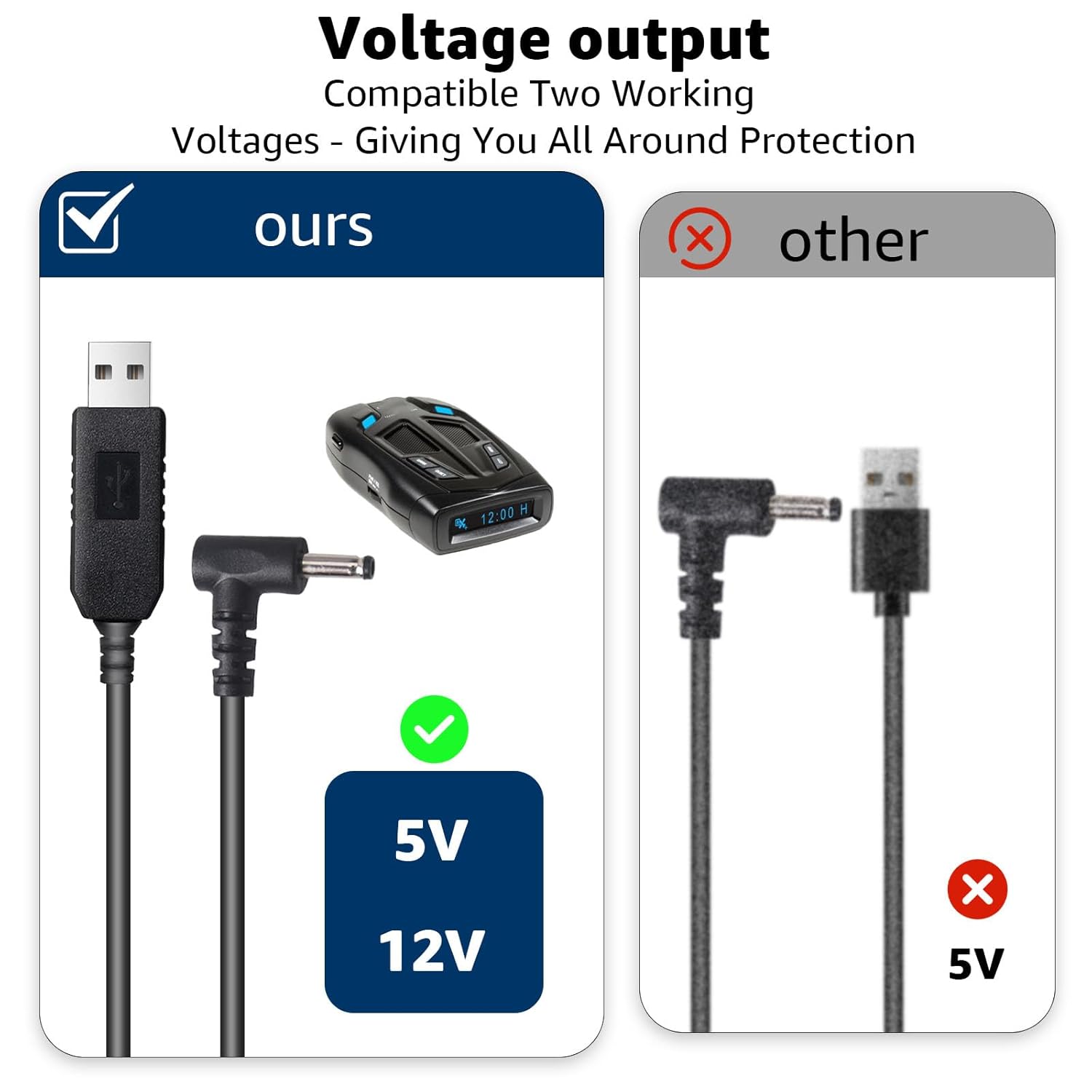 - Stable 5V-12V Power Supply:Equipped with 5V to 12V chip technology,the cable ensures stable operation of your radar detector when connected to any compatible USB interface;