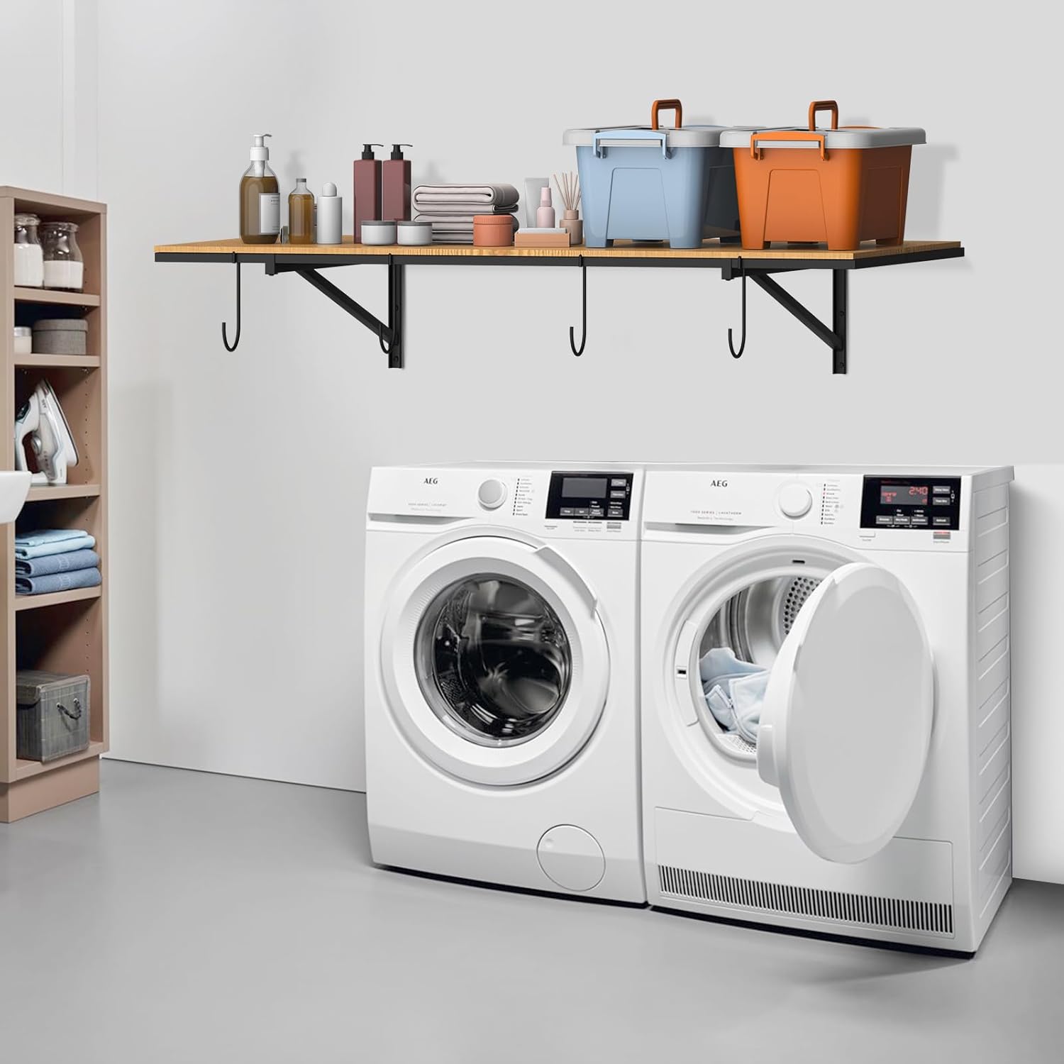 - 🔧Adjustable Distance Design: The two support brackets are ingeniously designed to allow distance adjustment tailored to your specific storage needs. This offers a versatile solution for varying size requirements, ensuring a more personalized and efficient storage system.