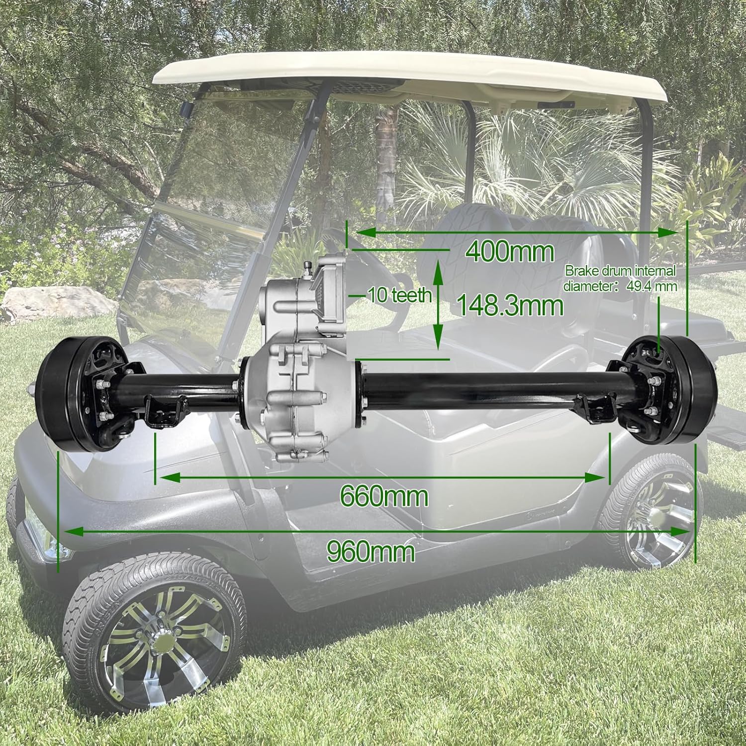1027717-01 102771701 Rear Axle Assembly with Brake Drum 10 Teeth for 1998-Up Club Car DS & 2004-Up Club Car Precedent Electric with Graziano Transaxle