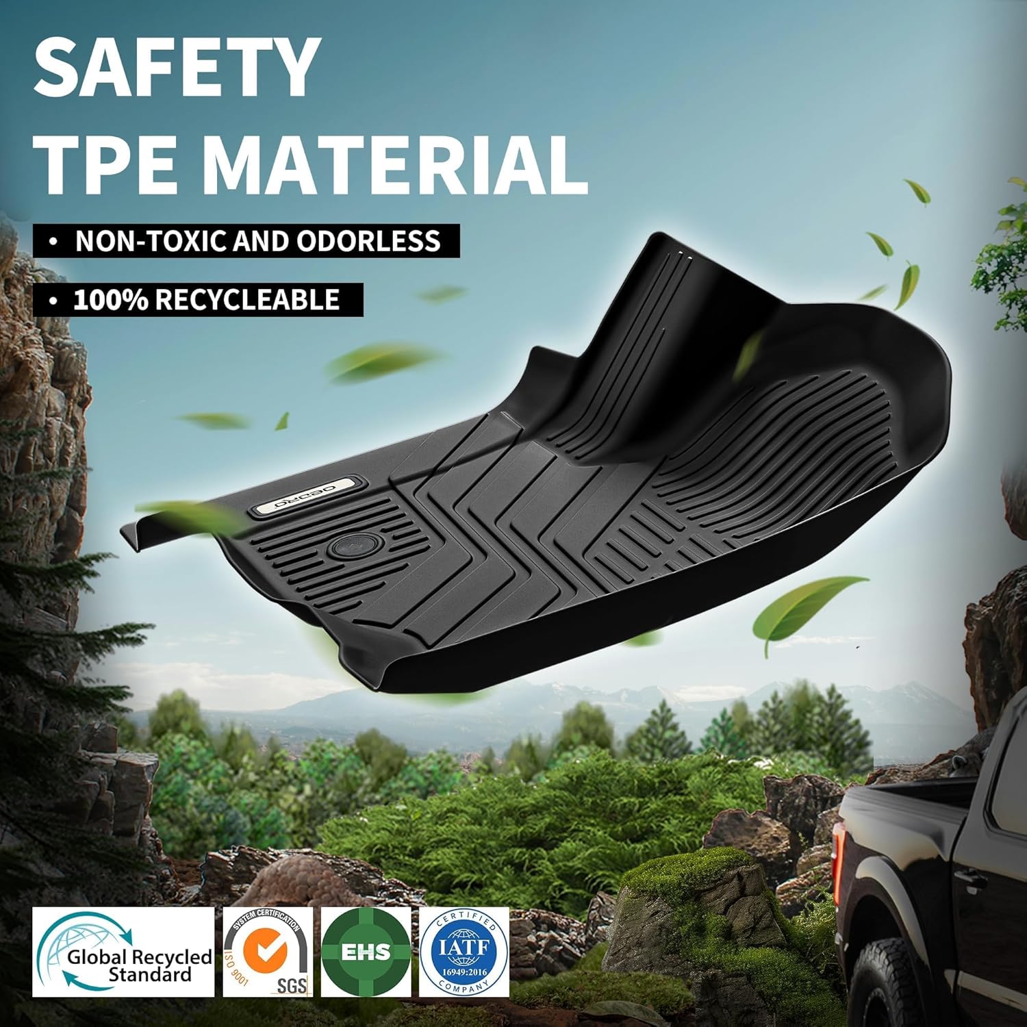 - Green & Sturdy: Presenting OEDRO floor mats and cargo liner, made from green, recyclableTPE. These mats, crafted with sustainable materials, embody our commitment to a greener planet and your family's safety