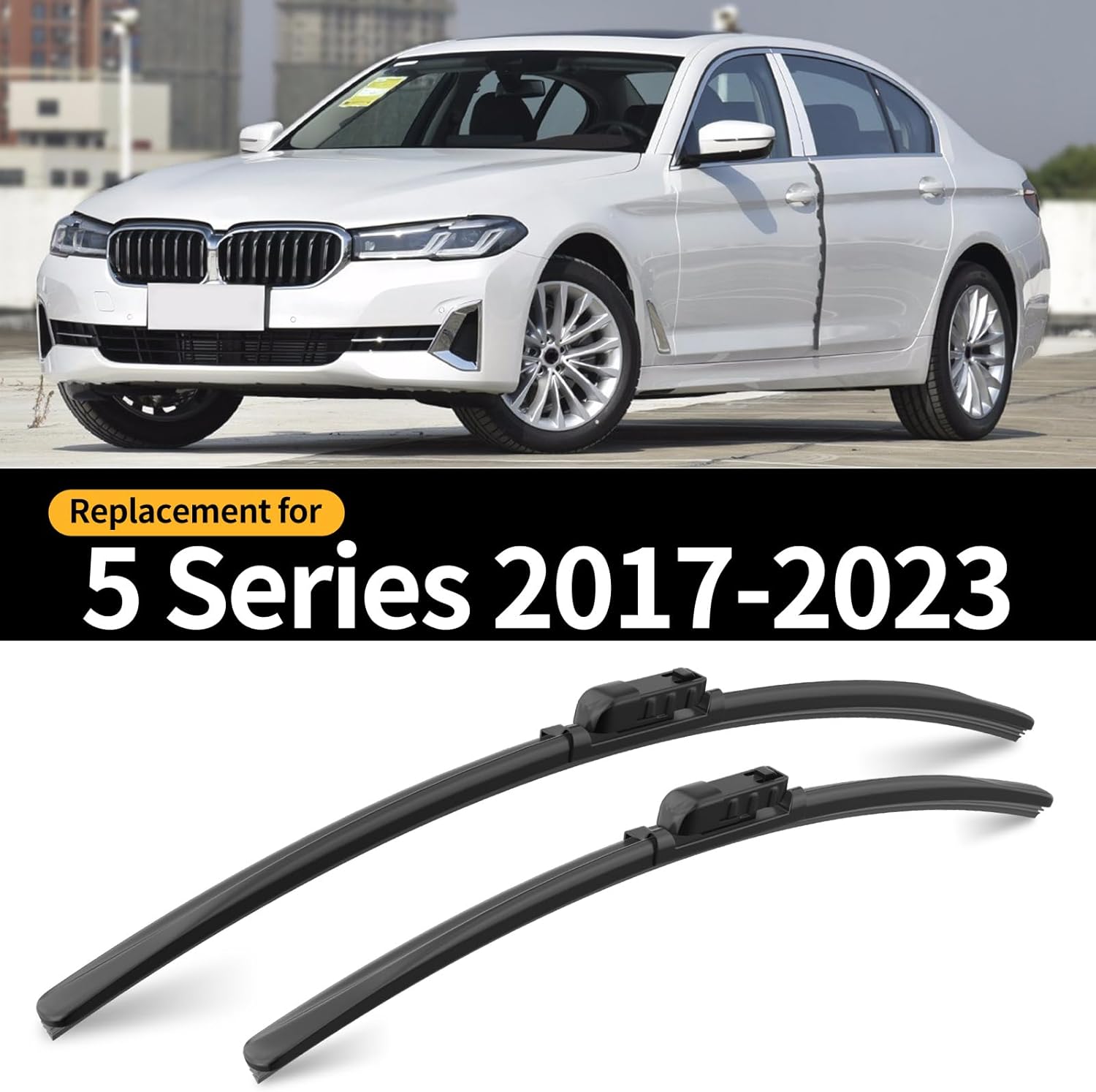 Front Windshield Wipers, 2-Piece Set for BMW 5 Series 530i 530e 540i M550i 2017 2018 2019 2020 2021 2022 2023 - Automotive Replacement Front Wiper Blades for Car Window