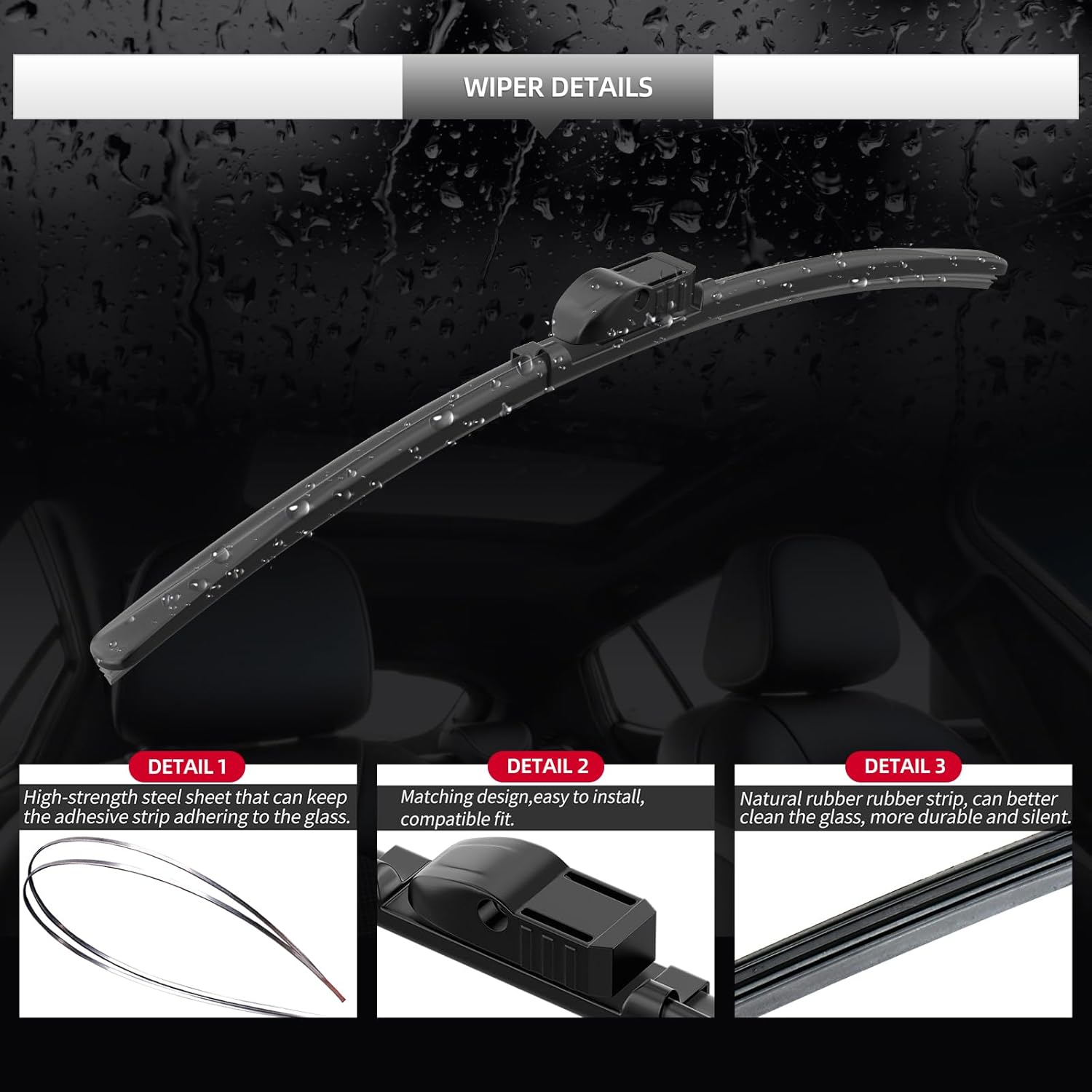 - Durable and Long-Lasting: Built with high-quality materials to resist wear and tear. These windshield wiper blades offer reliable performance over time