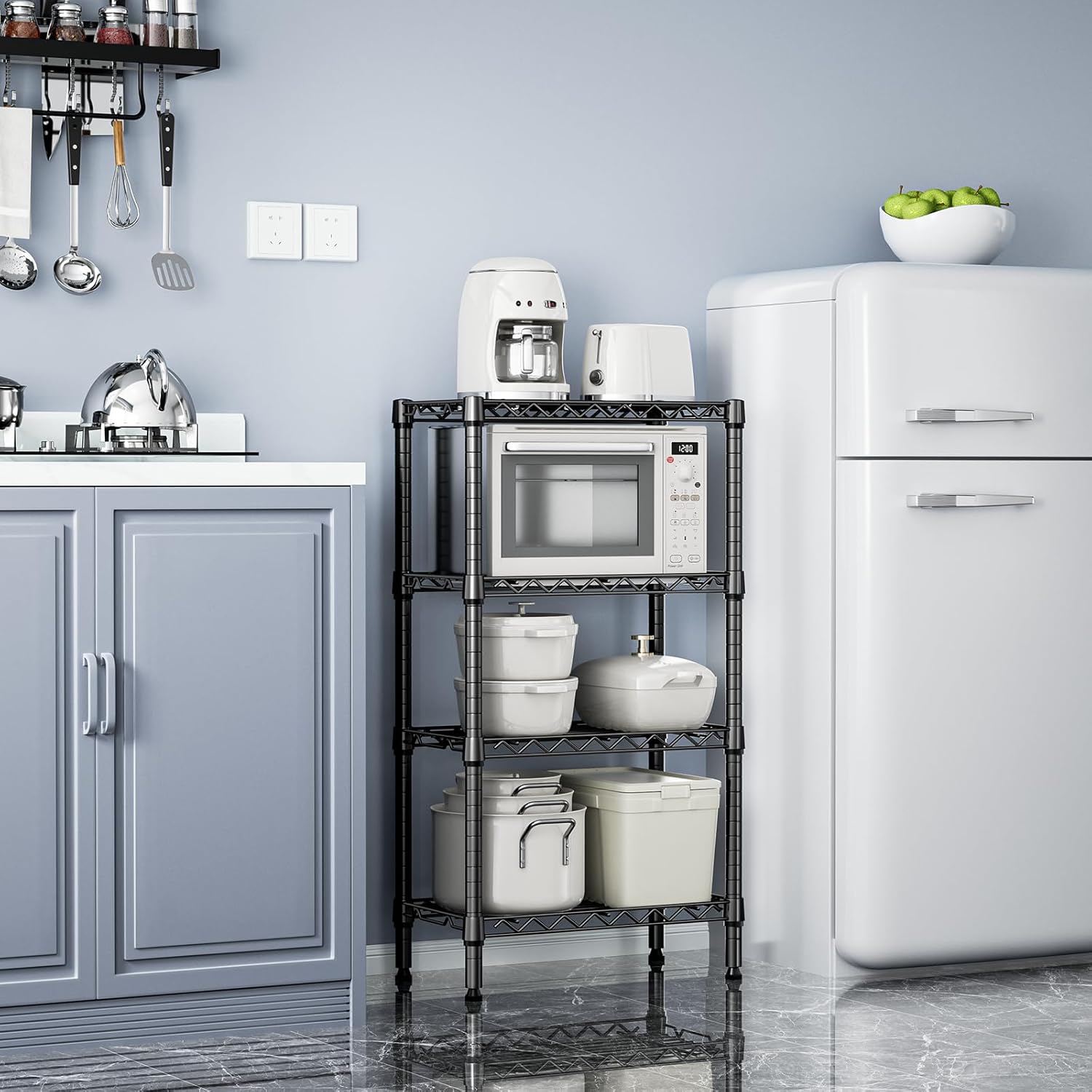 - SPACE MAGICIAN: This storage shelf is exquisitely designed to maximize efficiency in small spaces. Its multiple wire shelves provide ample vertical storage capacity, making it an ideal choice for narrow areas or corners. The product dimensions is 11.8" D x 21.7" W x 39.5" H